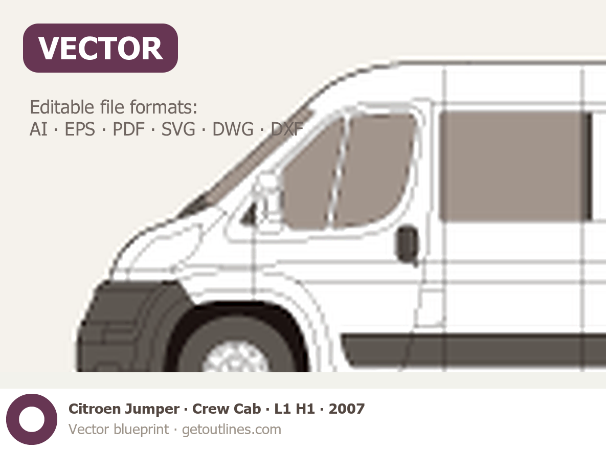 Buy this Citroen Jumper Crew Cab blueprint and line drawing in high-quality editable vector file formats. Best for 3D and car wrap design.
