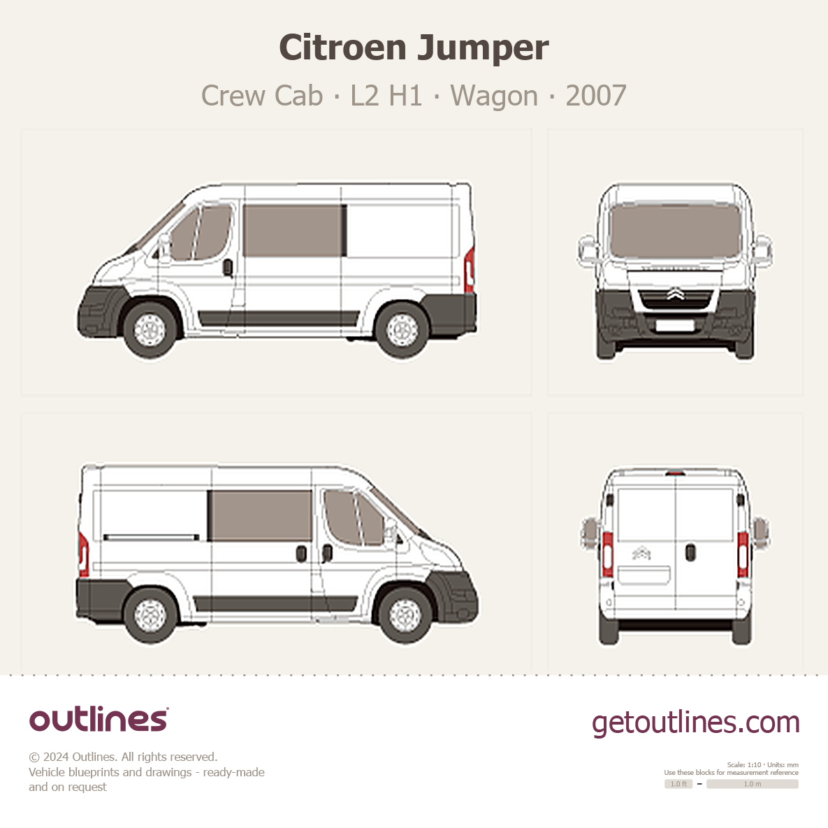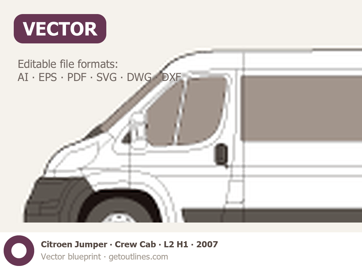 Buy this Citroen Jumper Crew Cab blueprint and line drawing in high-quality editable vector file formats. Best for 3D and car wrap design.