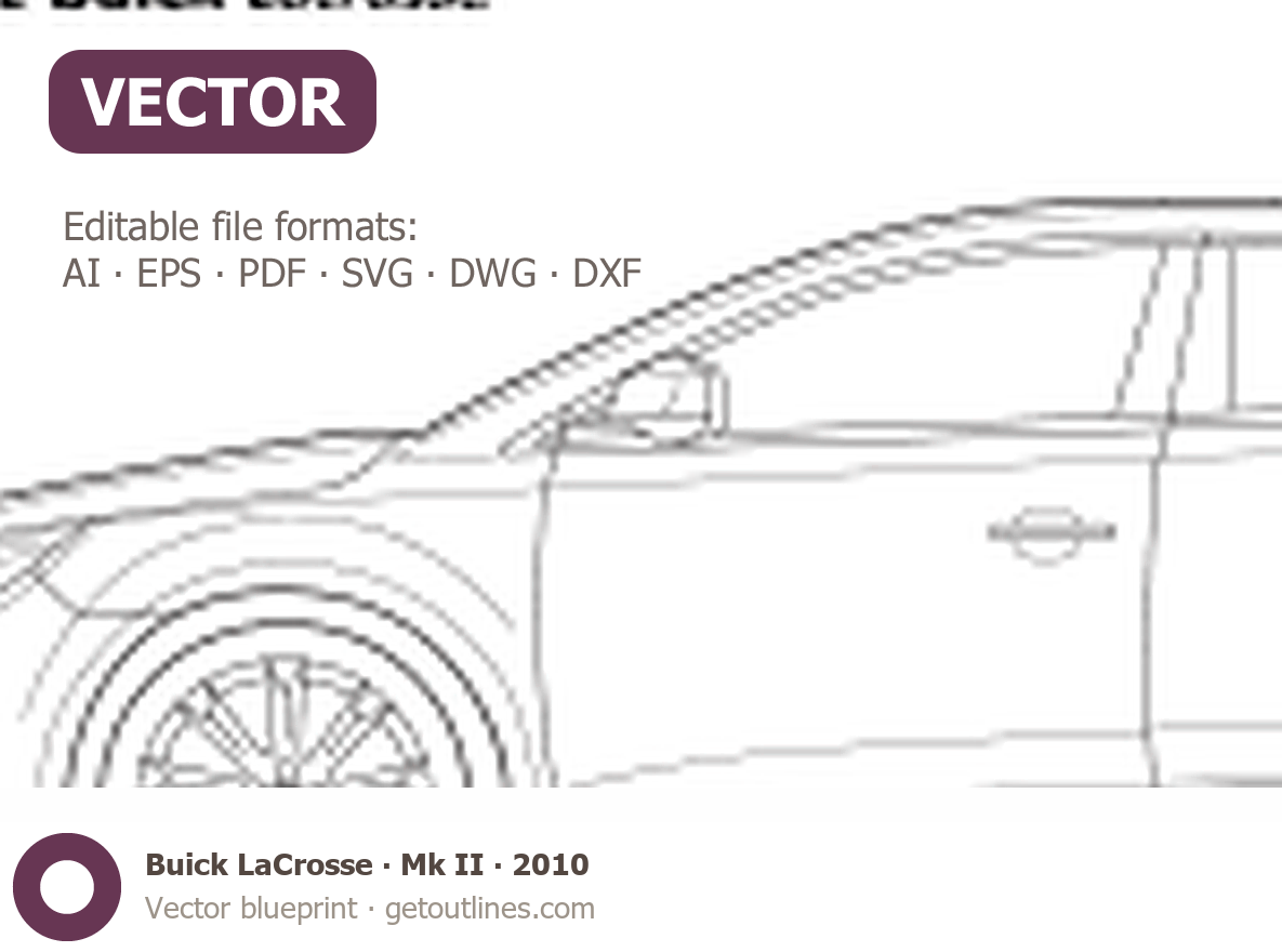 Buy this Buick LaCrosse Mk II blueprint and line drawing in high-quality editable vector file formats. Best for 3D and car wrap design.