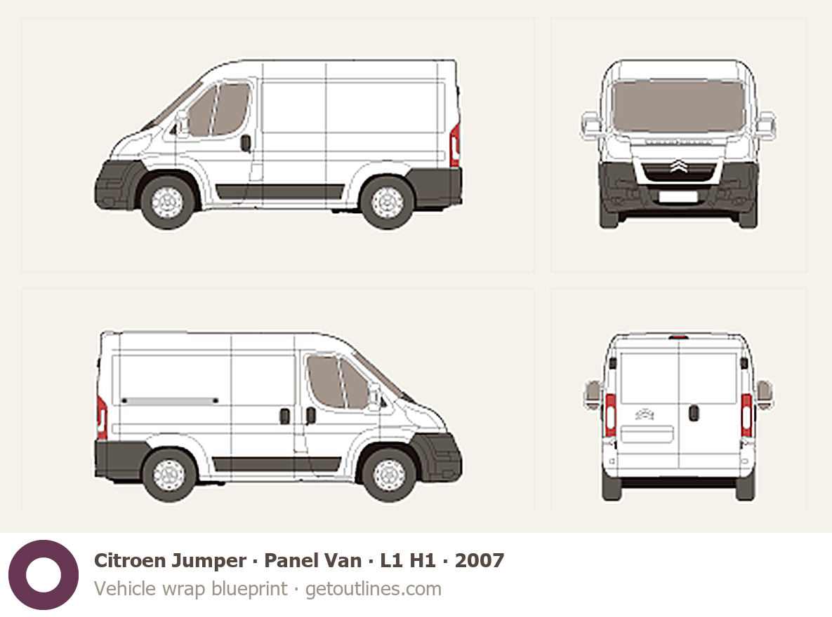 This 2007 Citroen Jumper Panel Van L1 H1 Van blueprint helps designers, wrap studios, and 3D artists simplify their workflow and save valuable time for creative work instead of routine tasks.