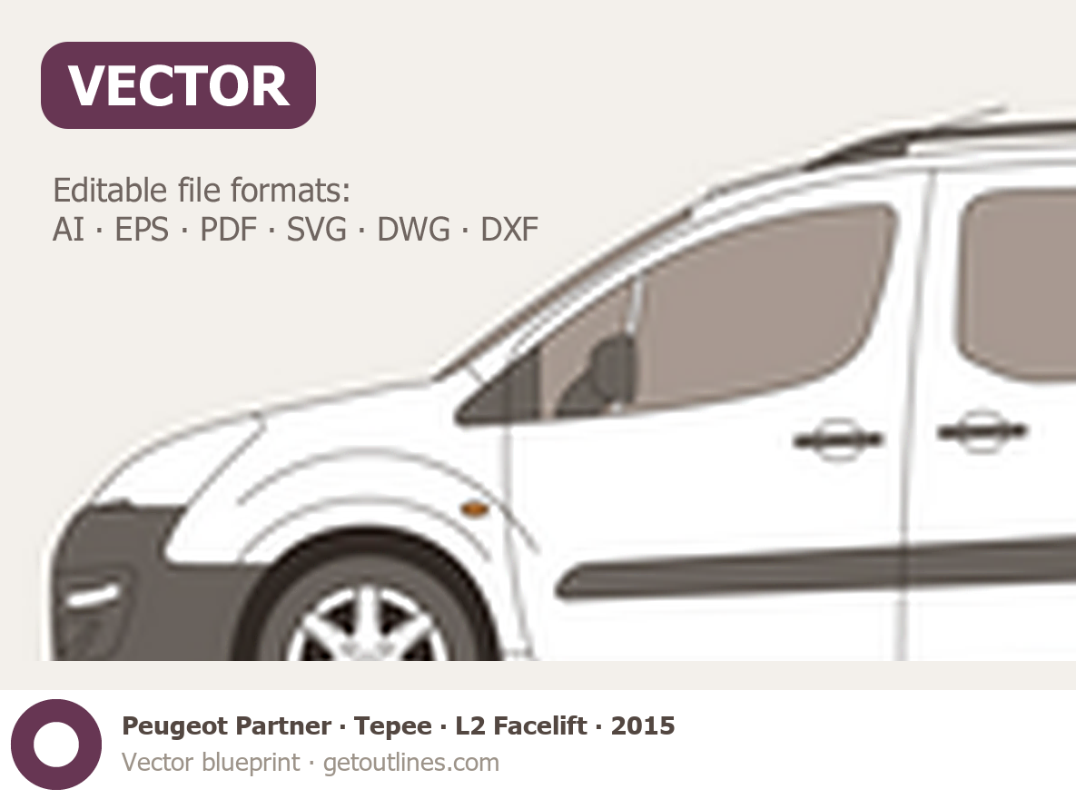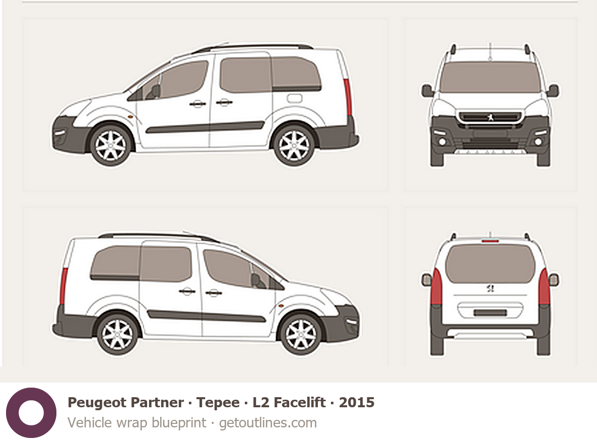 This 2015 Peugeot Partner Tepee L2 Facelift Wagon blueprint helps designers, wrap studios, and 3D artists simplify their workflow and save valuable time for creative work instead of routine tasks.