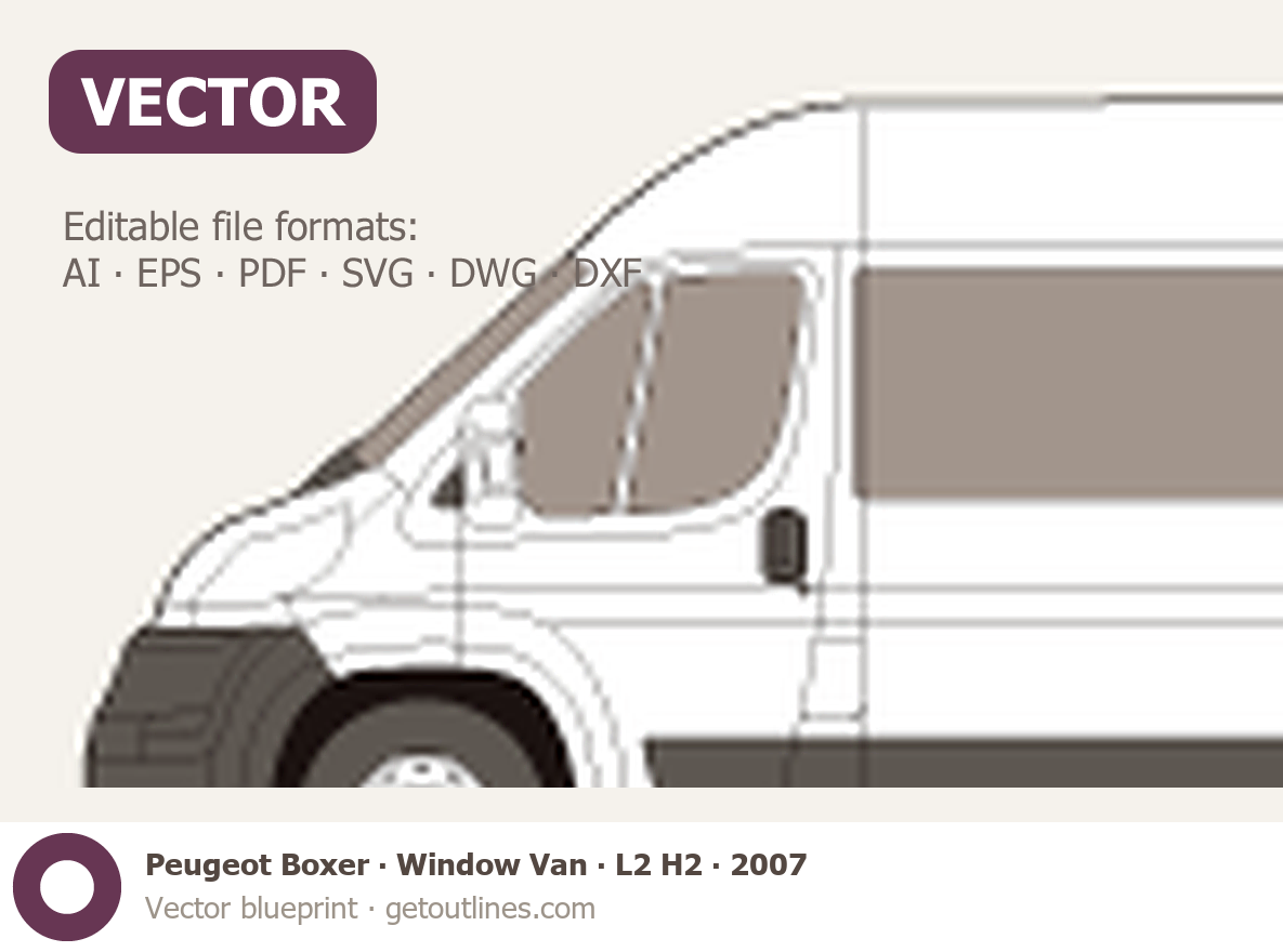This 2007 Peugeot Boxer Window Van L2 H2 Van blueprint helps designers, wrap studios, and 3D artists simplify their workflow and save valuable time for creative work instead of routine tasks.