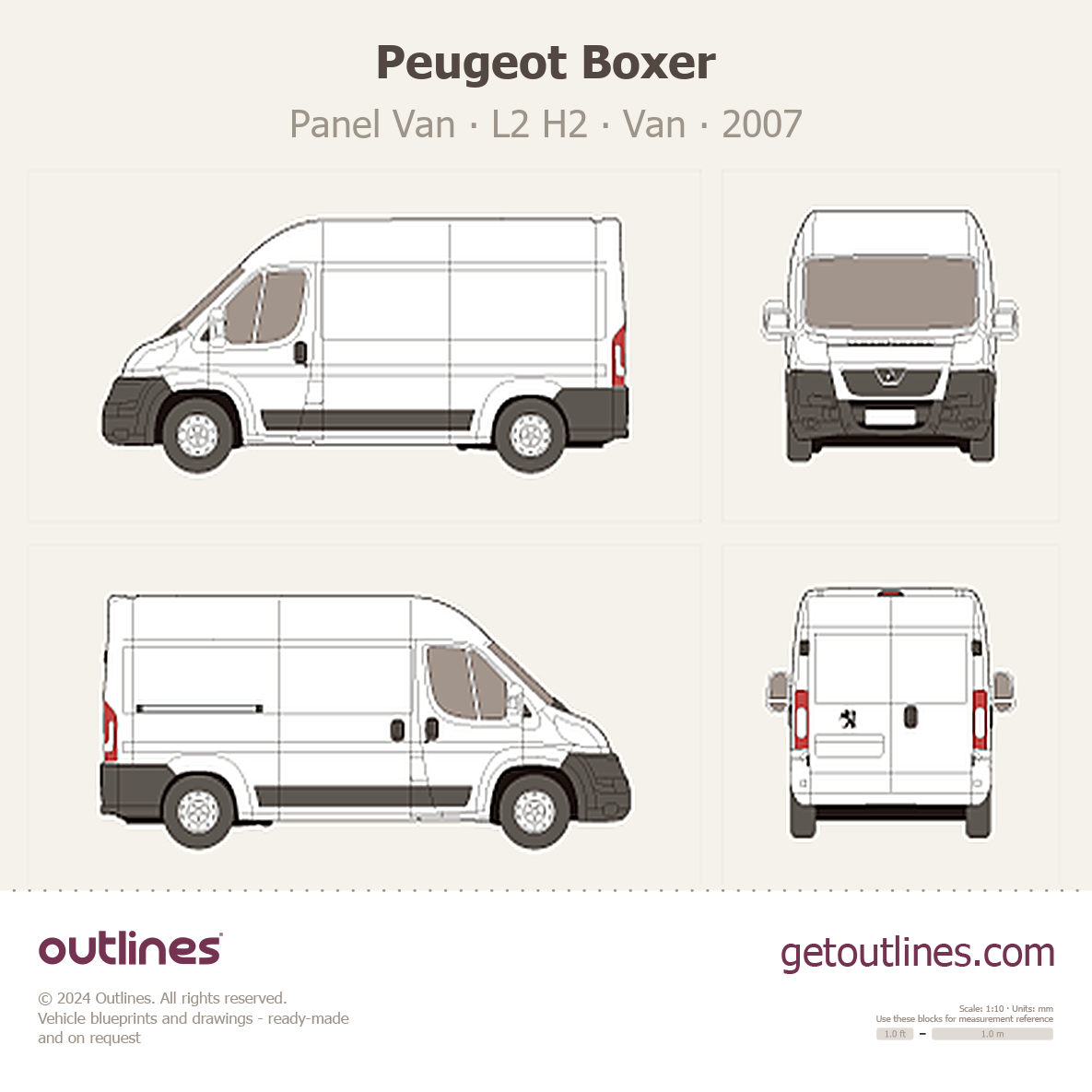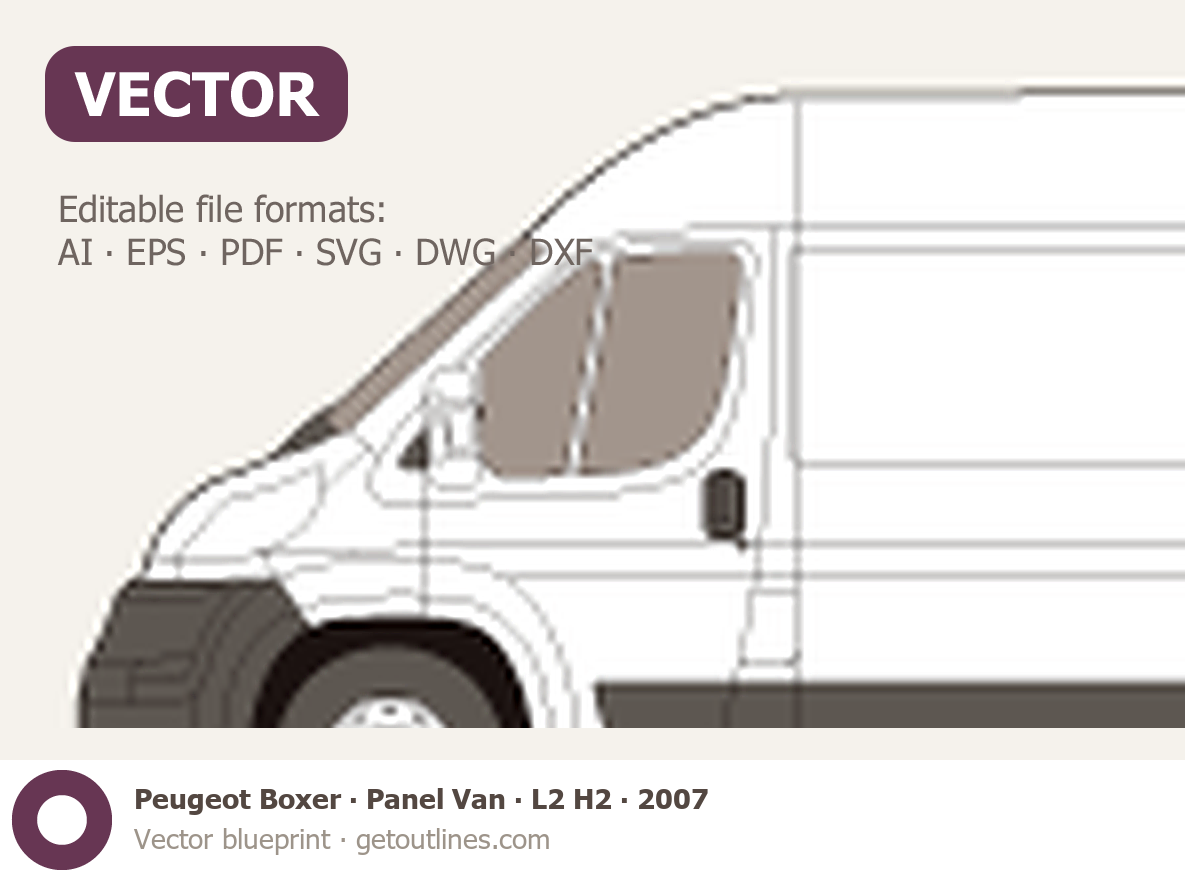 This 2007 Peugeot Boxer Panel Van L2 H2 Van blueprint helps designers, wrap studios, and 3D artists simplify their workflow and save valuable time for creative work instead of routine tasks.