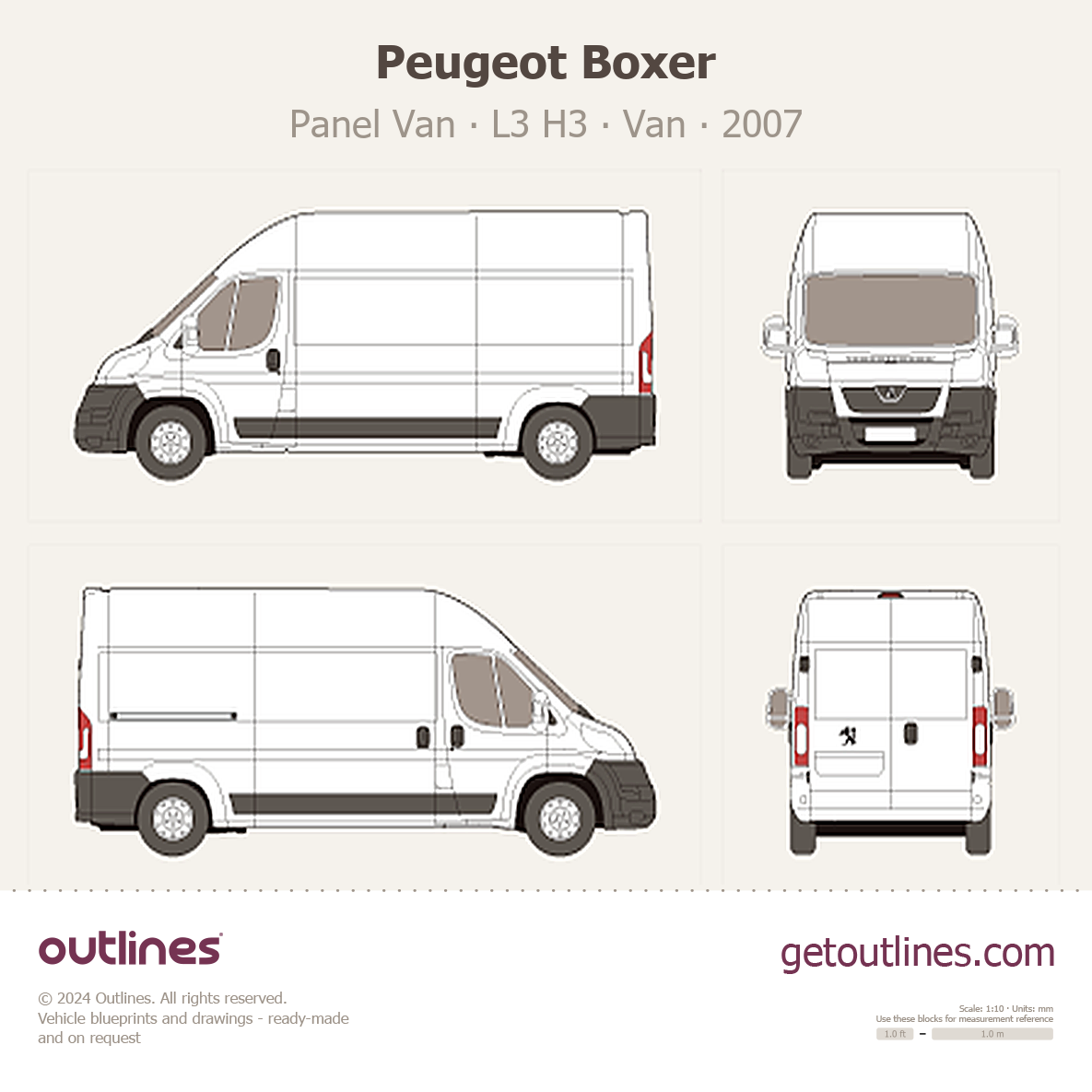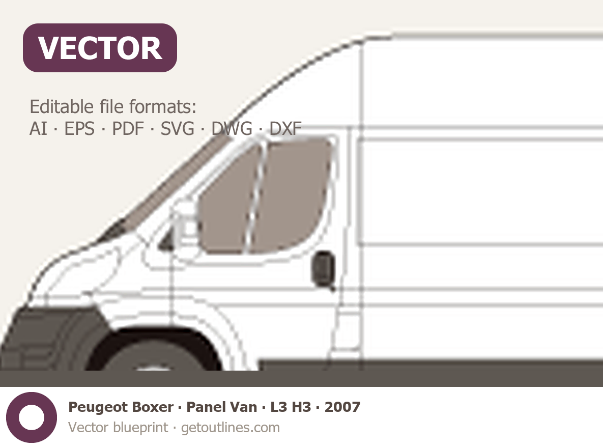 This 2007 Peugeot Boxer Panel Van L3 H3 Van blueprint helps designers, wrap studios, and 3D artists simplify their workflow and save valuable time for creative work instead of routine tasks.