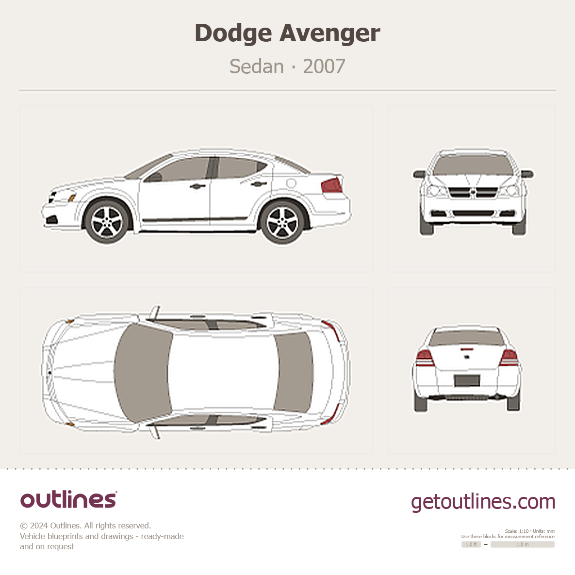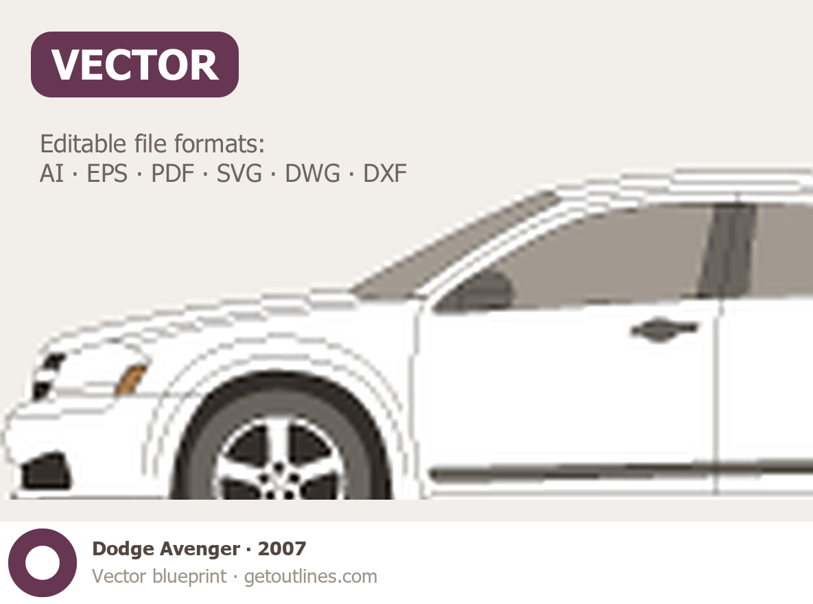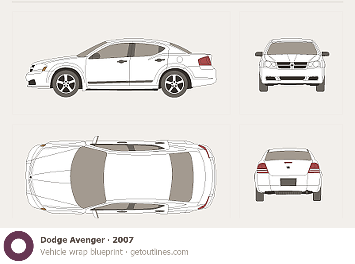 Buy this Dodge Avenger blueprint and line drawing in high-quality editable vector file formats. Best for 3D and car wrap design.