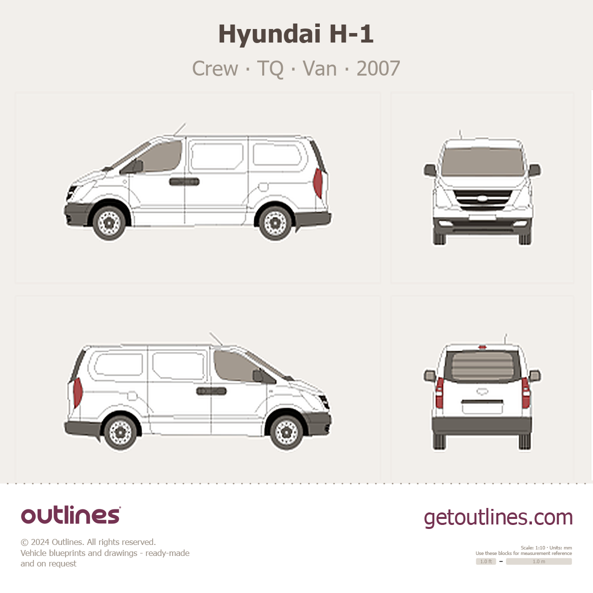 This is a blueprint of the H-1, produced by carmaker Hyundai in 2007 - 2015. It features a Van body design and is classified as a Commercial vehicle.