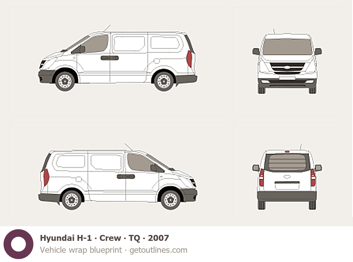 This 2007 Hyundai H-1 Crew TQ Van blueprint helps designers, wrap studios, and 3D artists simplify their workflow and save valuable time for creative work instead of routine tasks.