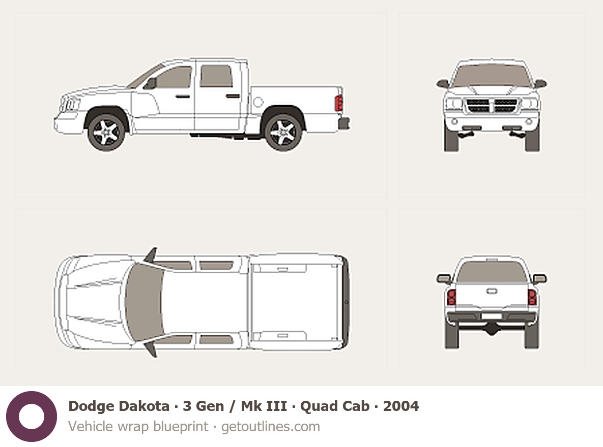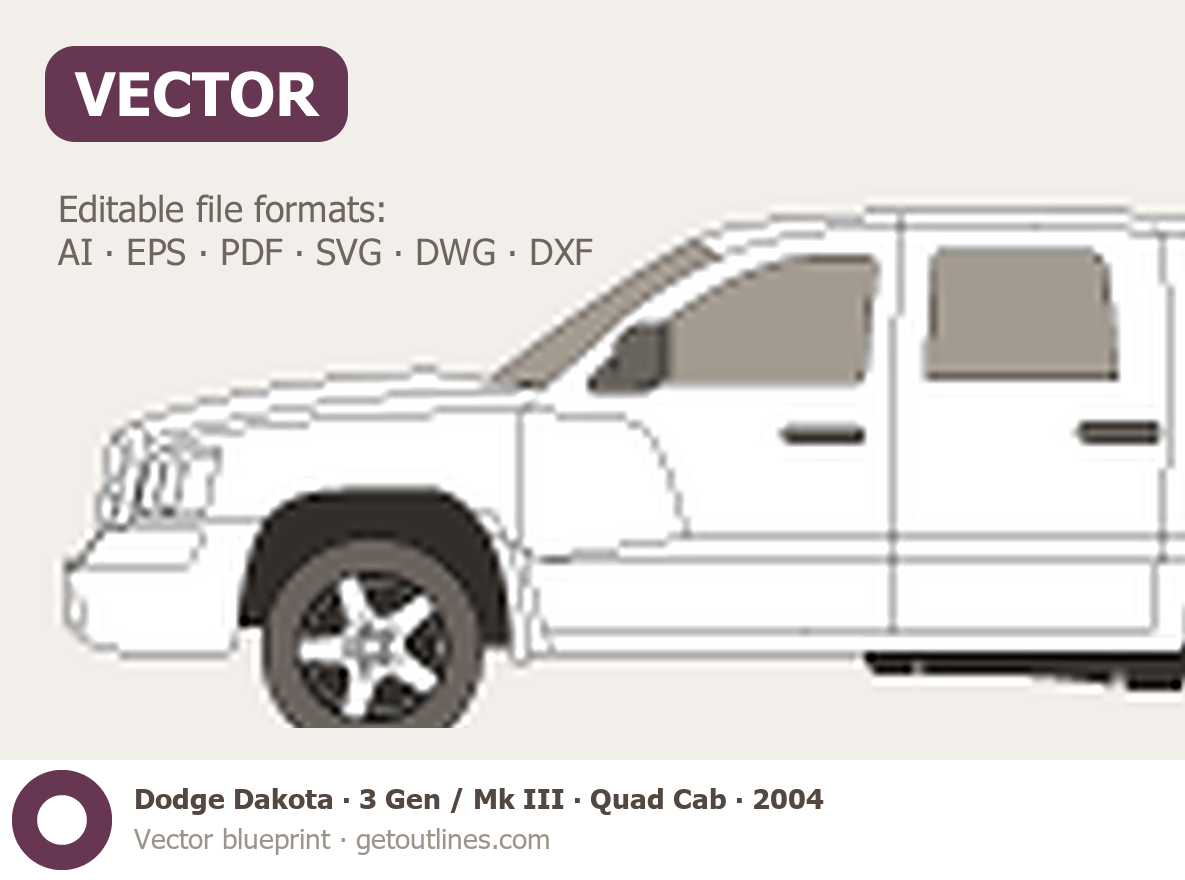 Buy this Dodge Dakota 3 Gen / Mk III blueprint and line drawing in high-quality editable vector file formats. Best for 3D and car wrap design.