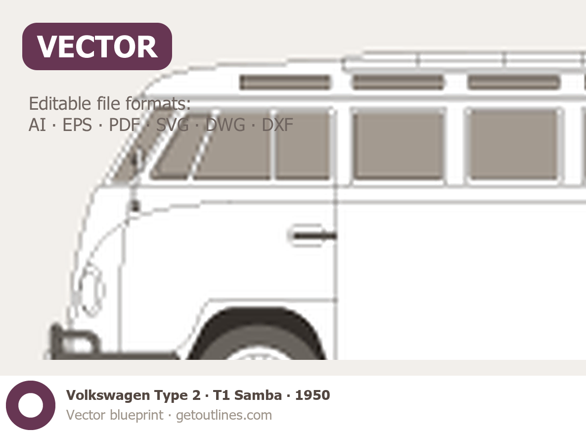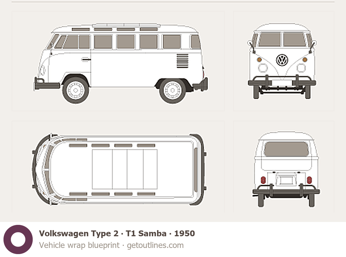 This 1950 Volkswagen Type 2 T1 Samba Microvan blueprint helps designers, wrap studios, and 3D artists simplify their workflow and save valuable time for creative work instead of routine tasks.