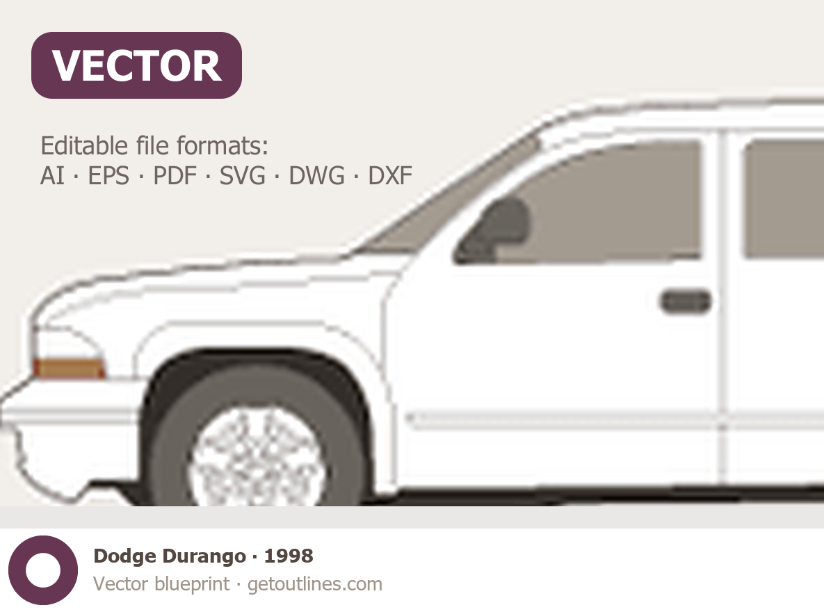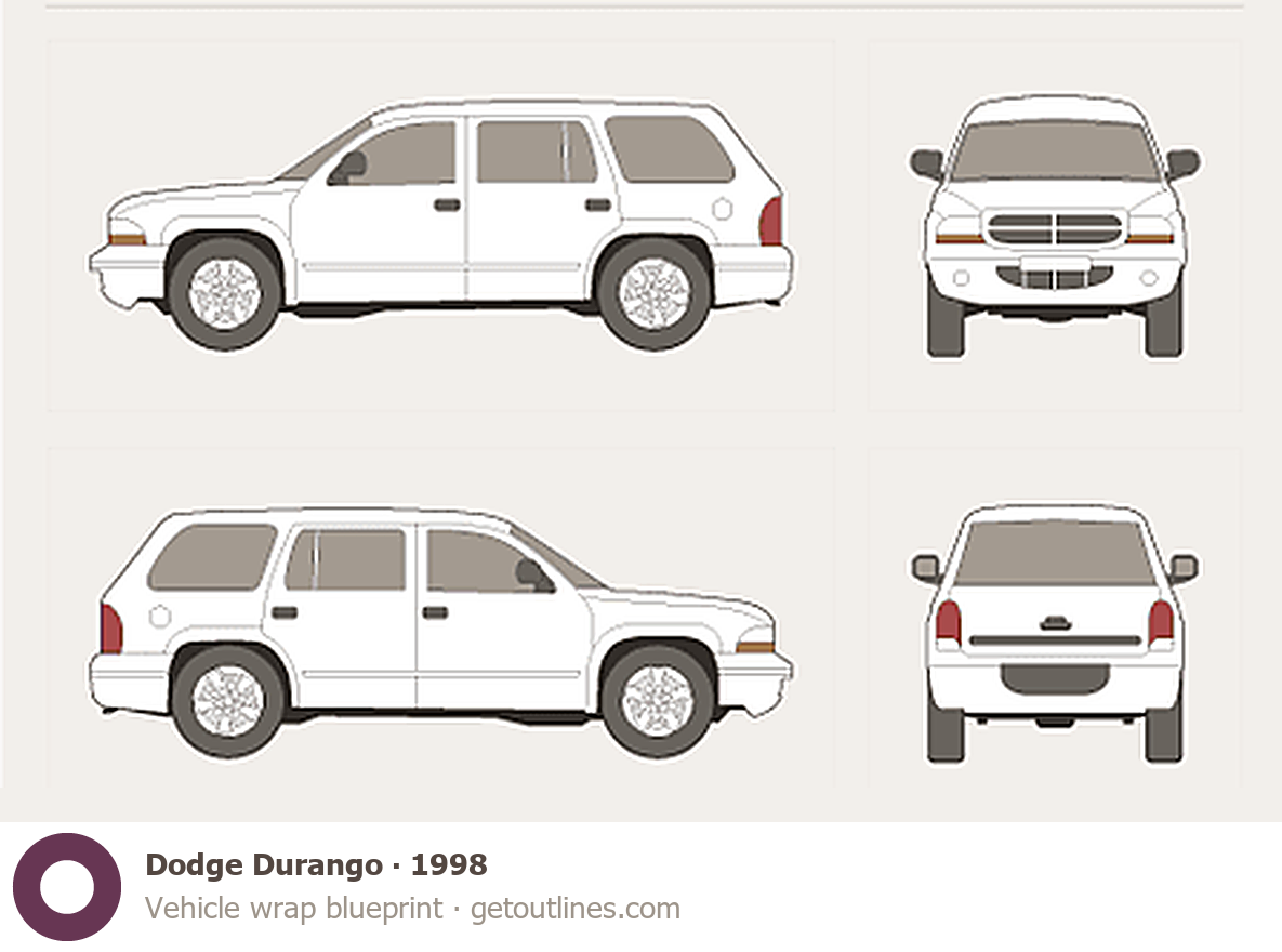 This 1998 Dodge Durango SUV blueprint helps designers, wrap studios, and 3D artists simplify their workflow and save valuable time for creative work instead of routine tasks.