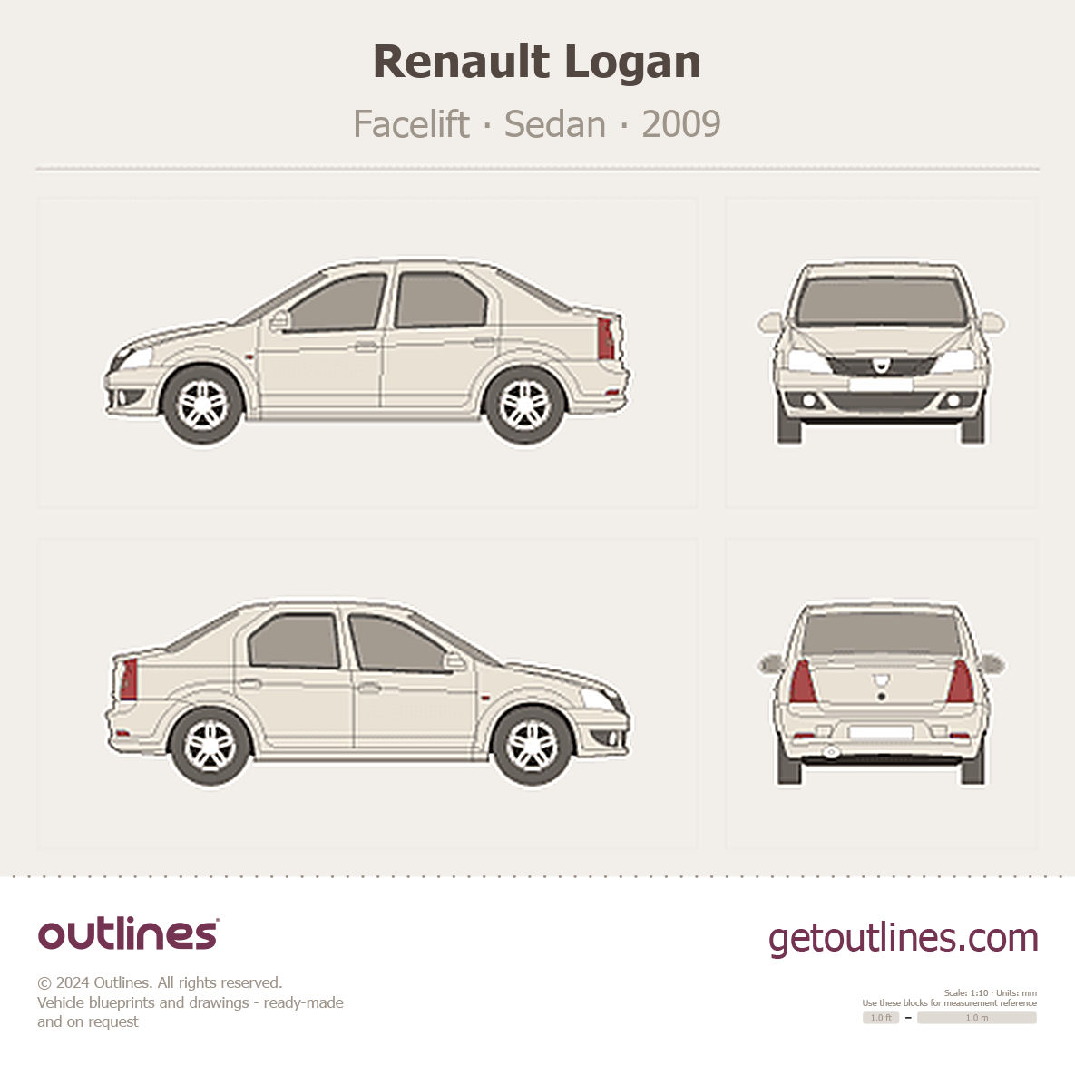 This is a blueprint of the Logan, produced by carmaker Renault in 2009 - 2015. It features a Sedan body design and is classified as a Family vehicle.