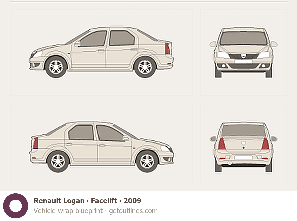 This 2009 Renault Logan Facelift Sedan blueprint helps designers, wrap studios, and 3D artists simplify their workflow and save valuable time for creative work instead of routine tasks.