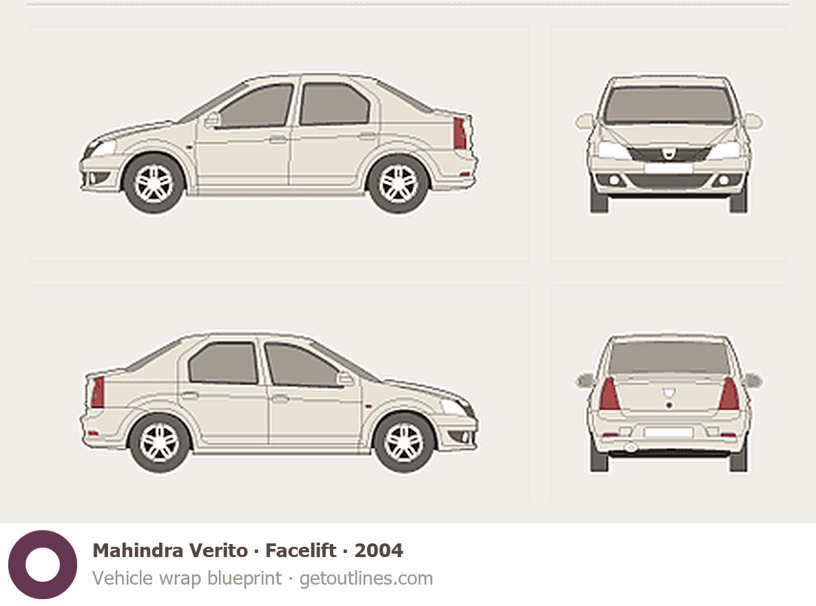 This 2004 Mahindra Verito Facelift Sedan blueprint helps designers, wrap studios, and 3D artists simplify their workflow and save valuable time for creative work instead of routine tasks.