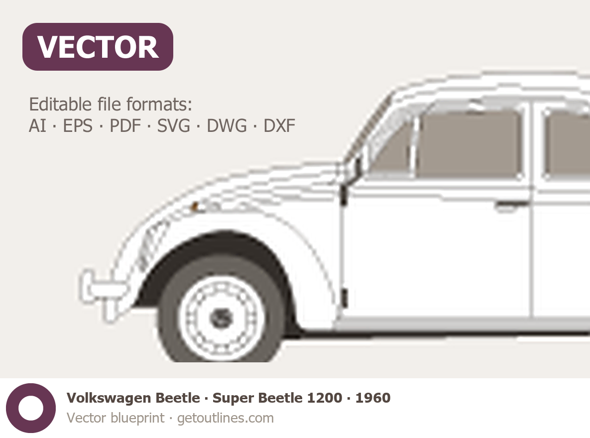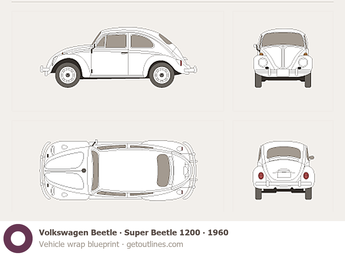 This 1960 Volkswagen Beetle Super Beetle 1200 Sedan blueprint helps designers, wrap studios, and 3D artists simplify their workflow and save valuable time for creative work instead of routine tasks.