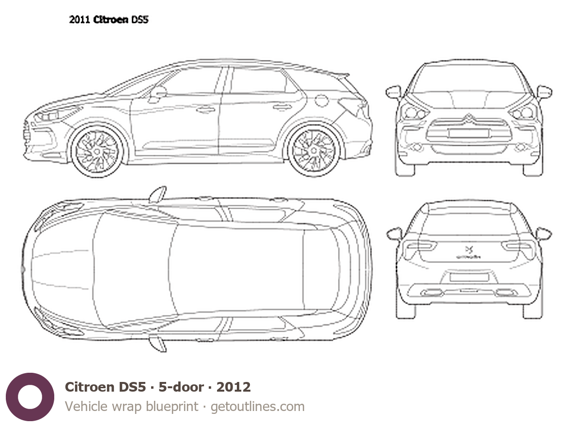 Buy this Citroen DS5 blueprint and line drawing in high-quality editable vector file formats. Best for 3D and car wrap design.