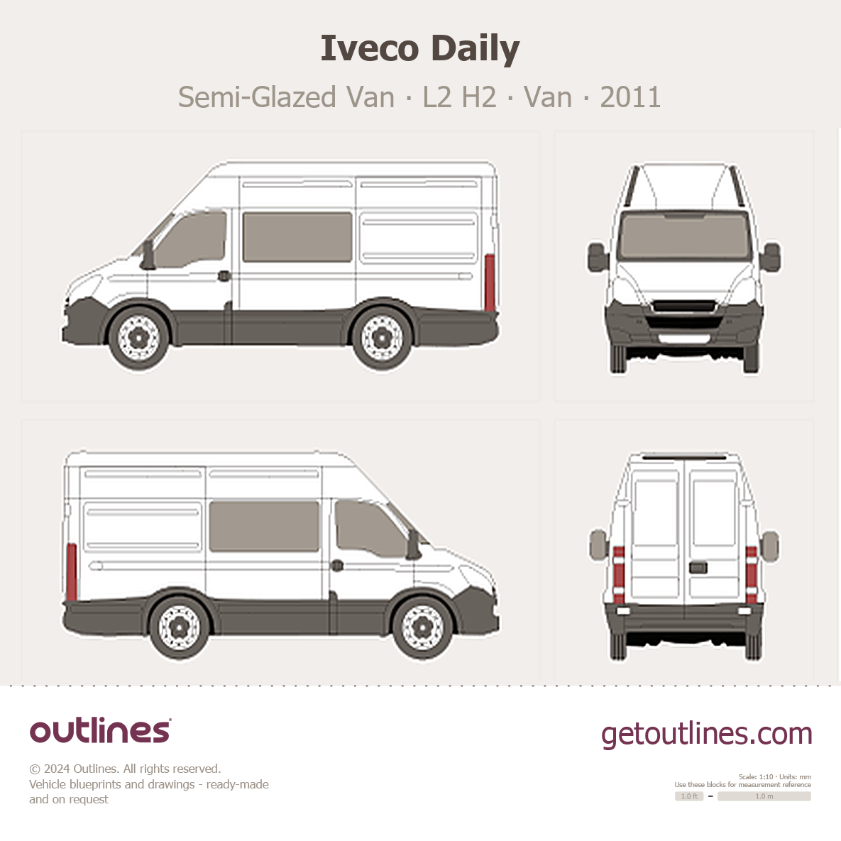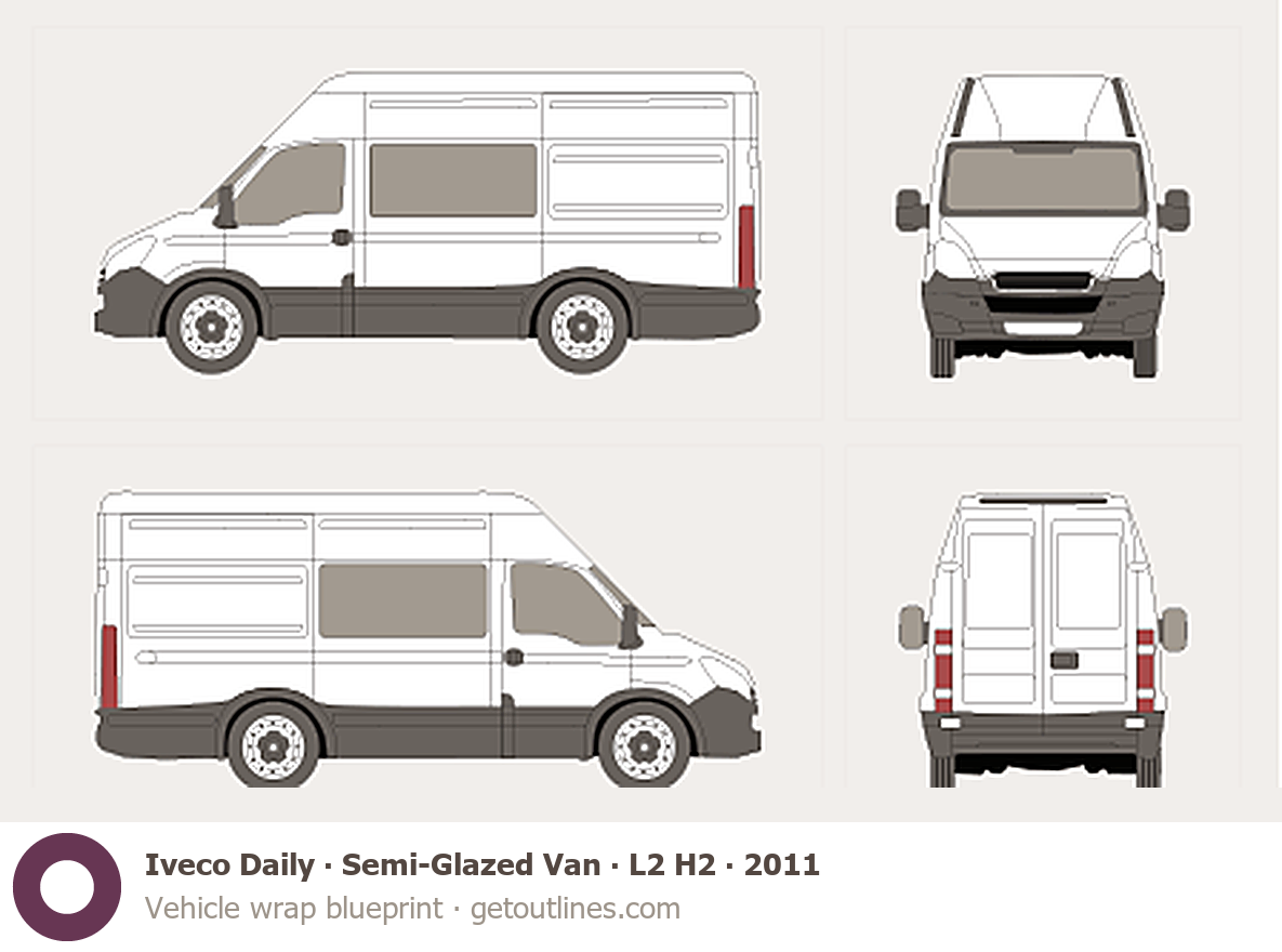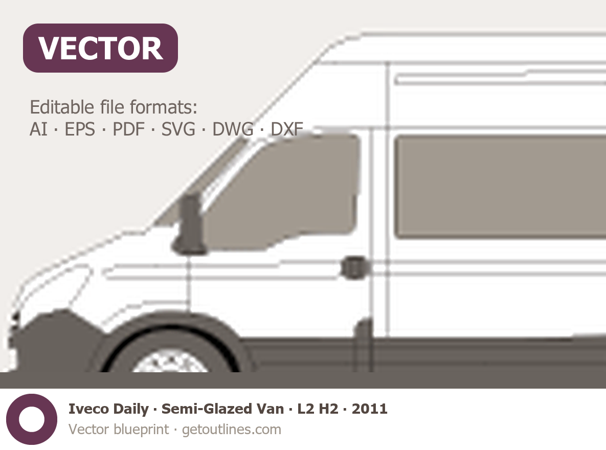 Buy this Iveco Daily Semi-Glazed Van blueprint and line drawing in high-quality editable vector file formats. Best for 3D and car wrap design.