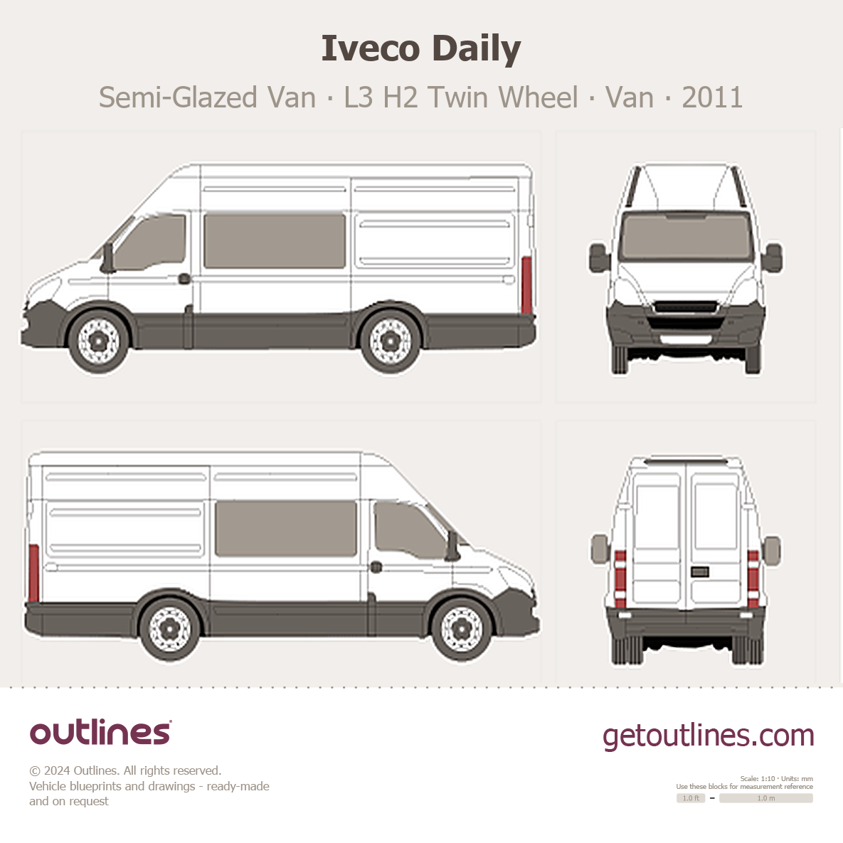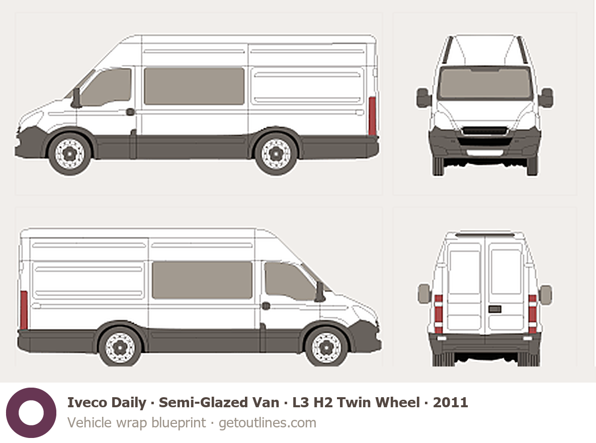 Buy this Iveco Daily Semi-Glazed Van blueprint and line drawing in high-quality editable vector file formats. Best for 3D and car wrap design.