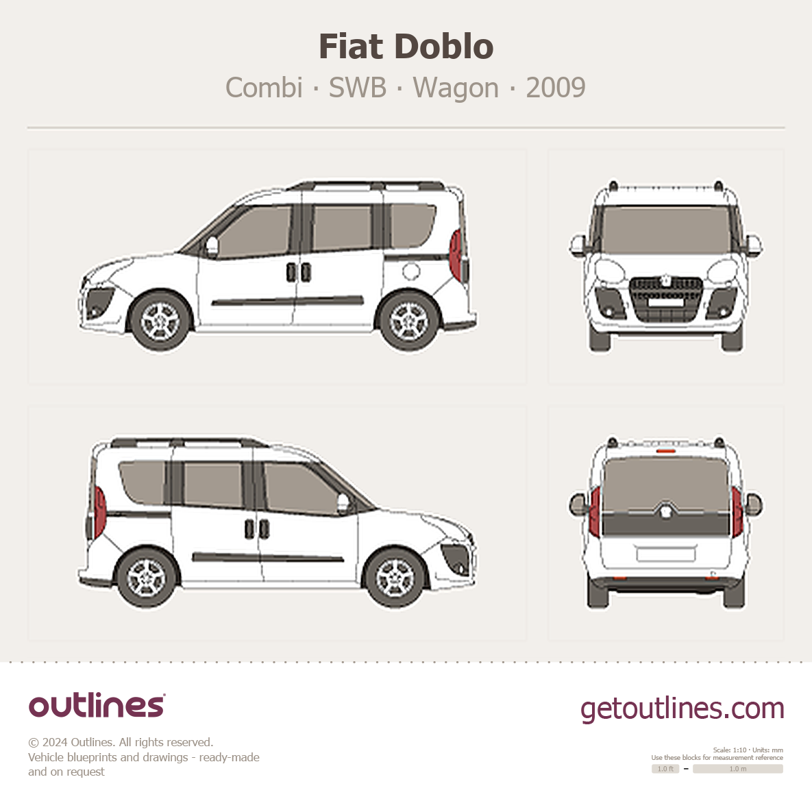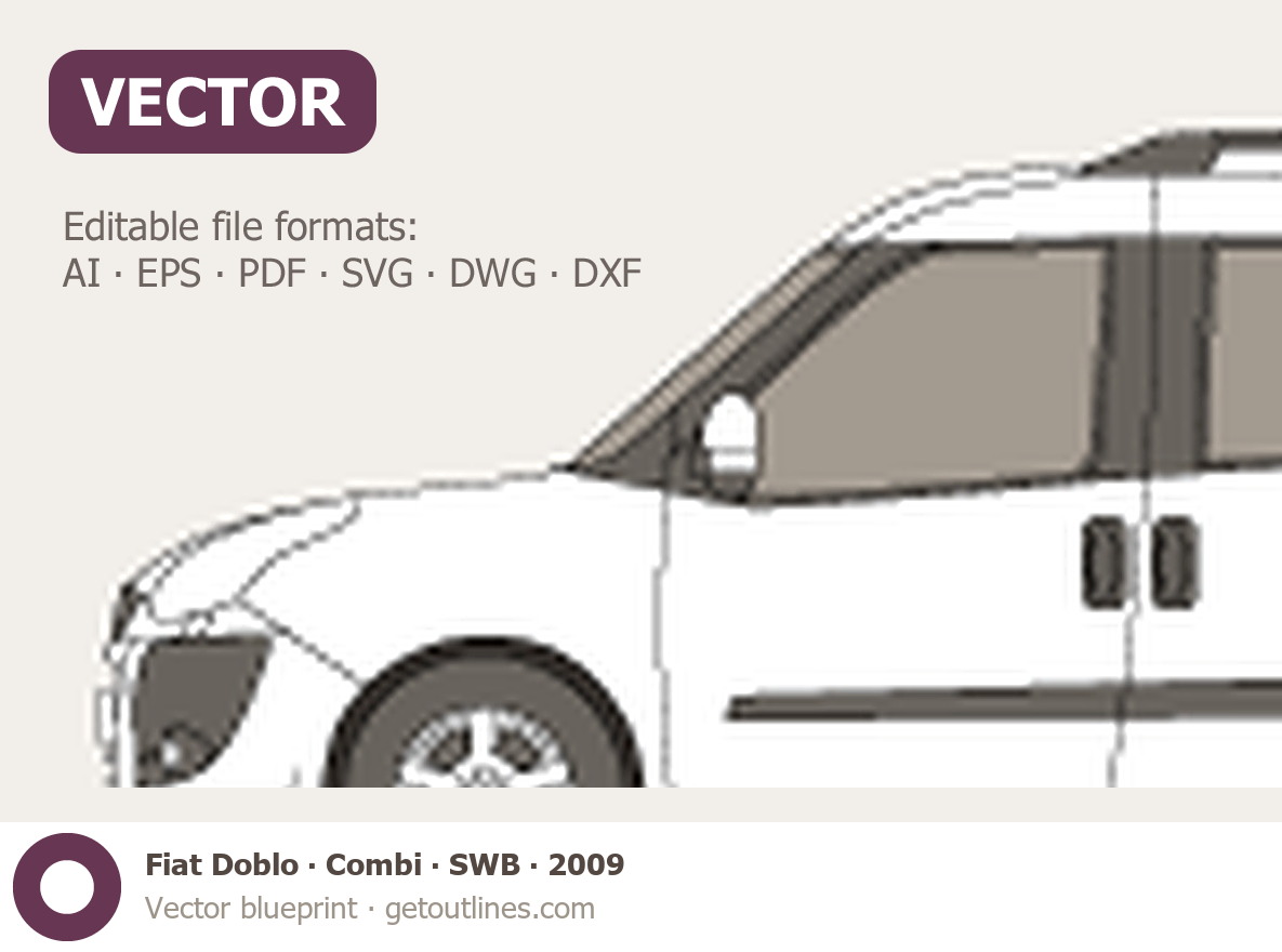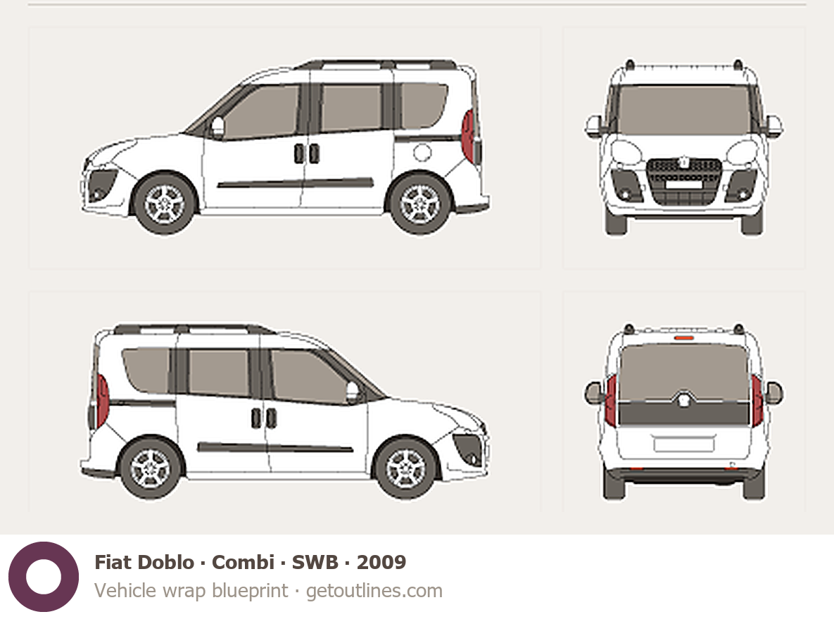 This 2009 Fiat Doblo Combi SWB Wagon blueprint helps designers, wrap studios, and 3D artists simplify their workflow and save valuable time for creative work instead of routine tasks.
