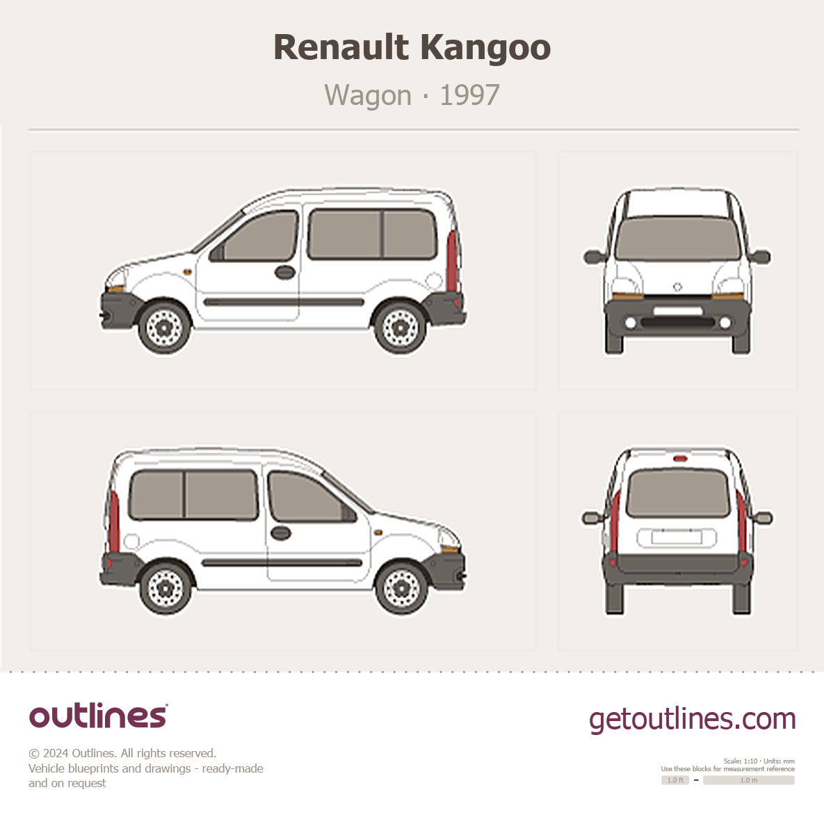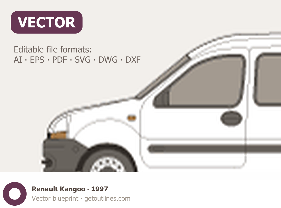 This 1997 Renault Kangoo Wagon blueprint helps designers, wrap studios, and 3D artists simplify their workflow and save valuable time for creative work instead of routine tasks.