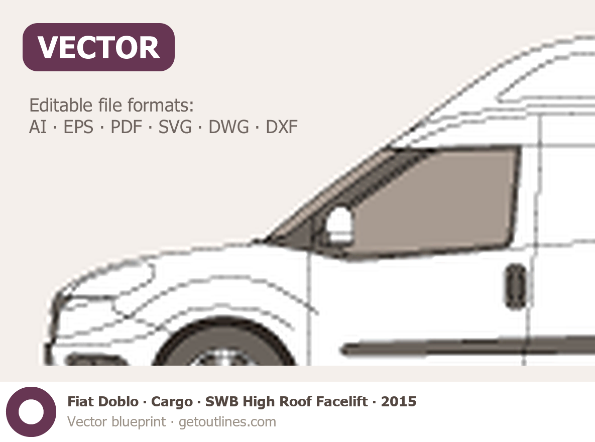 This 2015 Fiat Doblo Cargo SWB High Roof Facelift Van blueprint helps designers, wrap studios, and 3D artists simplify their workflow and save valuable time for creative work instead of routine tasks.