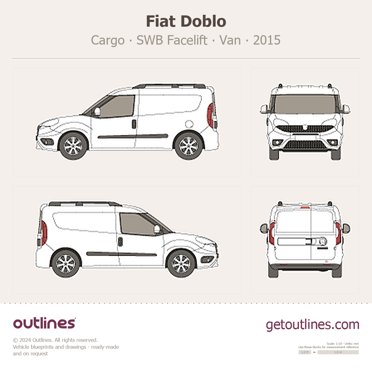 This is a blueprint of the Doblo, produced by carmaker Fiat in 2015 - Present (2025, 2026). It features a Van body design and is classified as a Commercial vehicle.