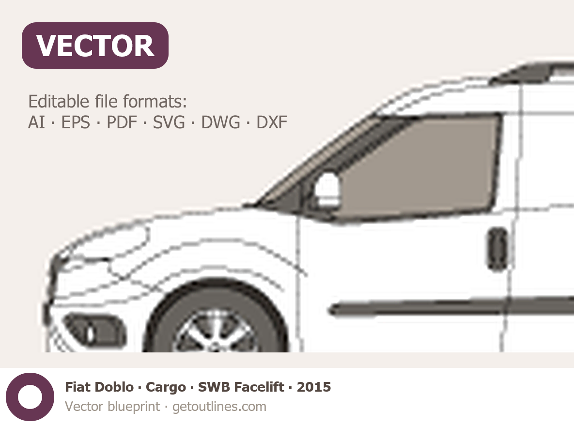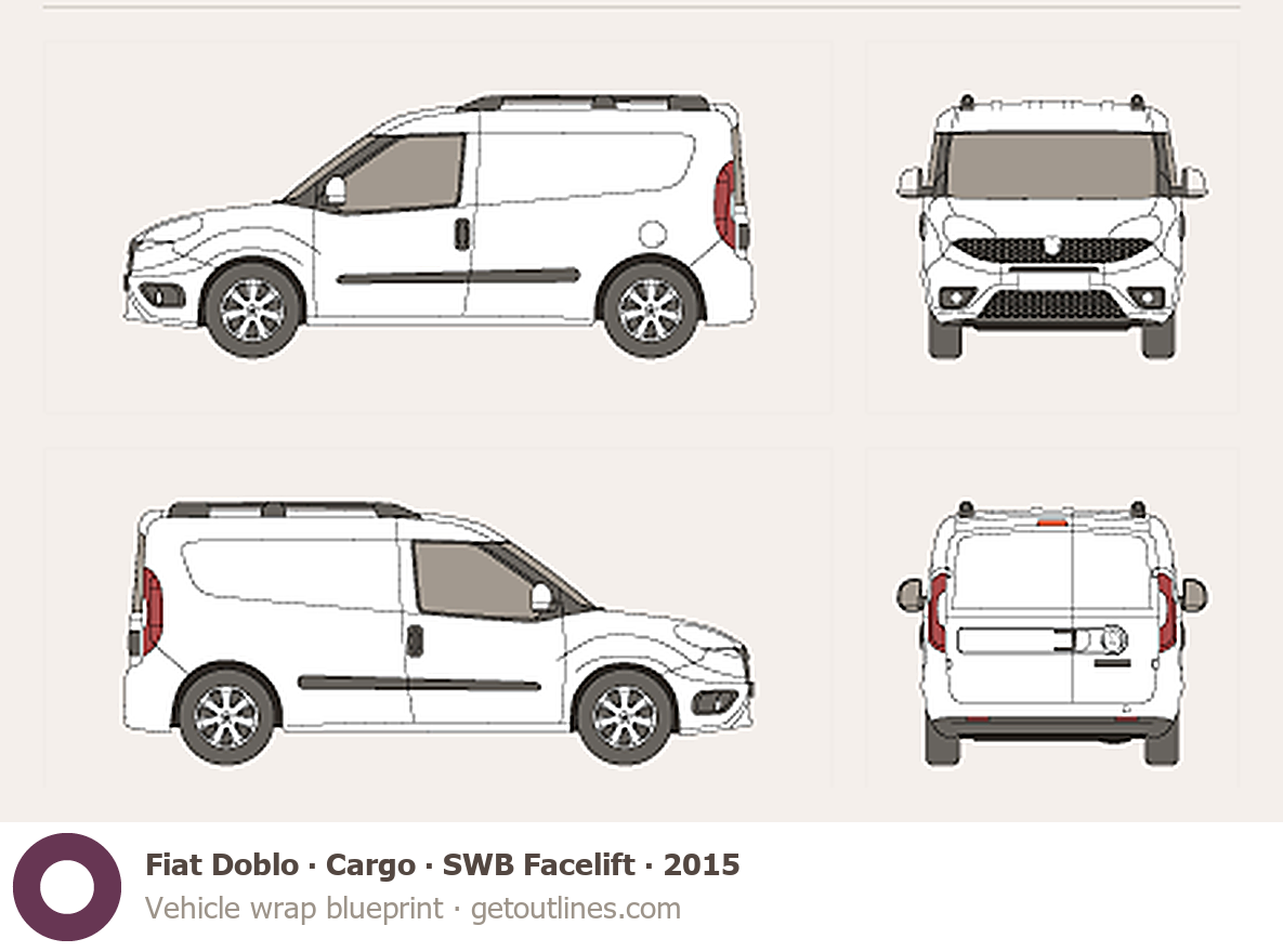 This 2015 Fiat Doblo Cargo SWB Facelift Van blueprint helps designers, wrap studios, and 3D artists simplify their workflow and save valuable time for creative work instead of routine tasks.