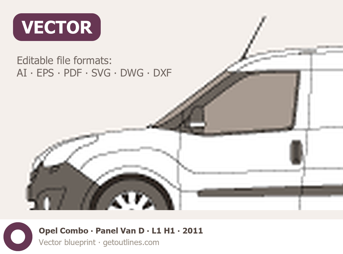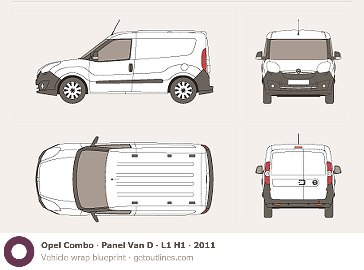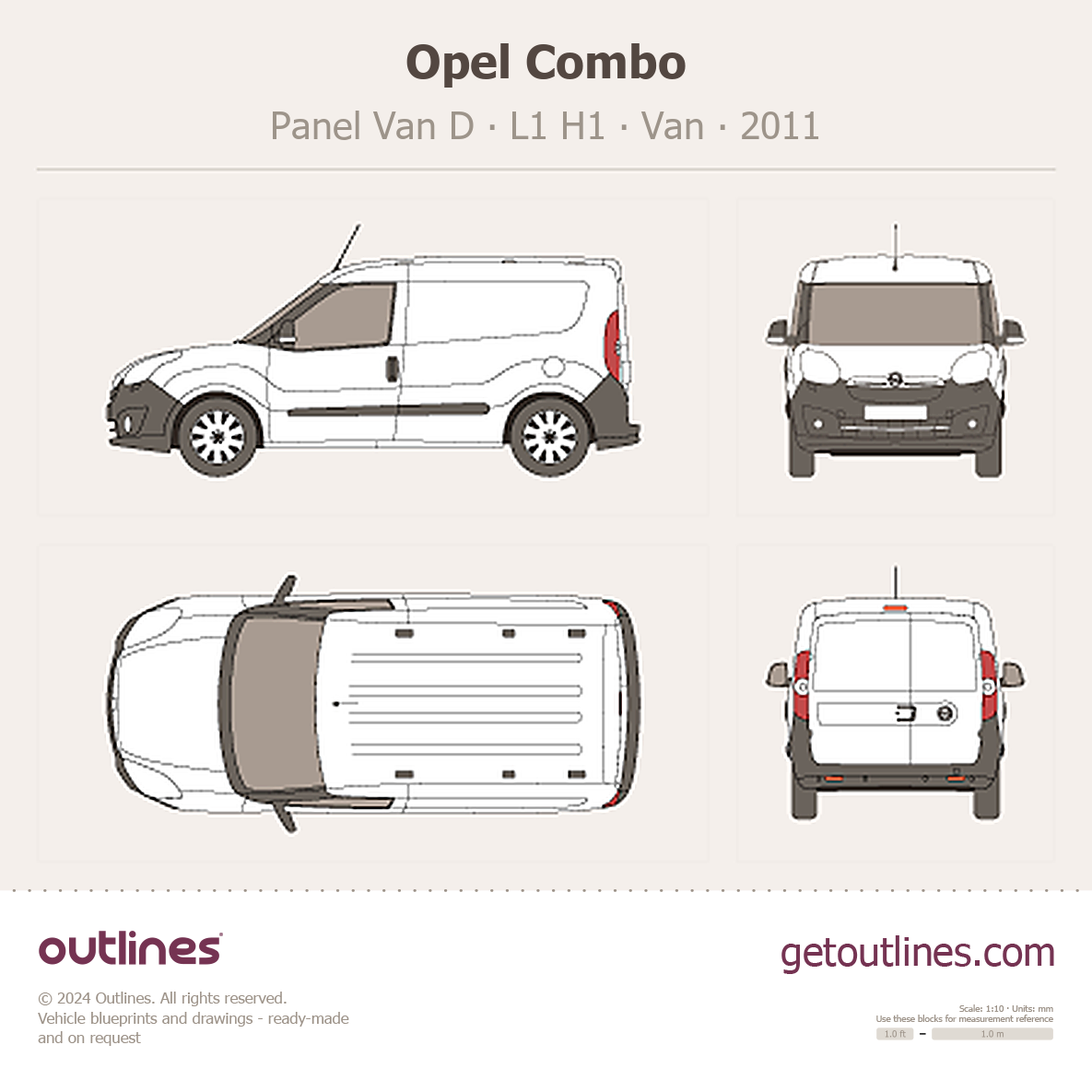 This 2011 Opel Combo Panel Van D L1 H1 Van blueprint helps designers, wrap studios, and 3D artists simplify their workflow and save valuable time for creative work instead of routine tasks.