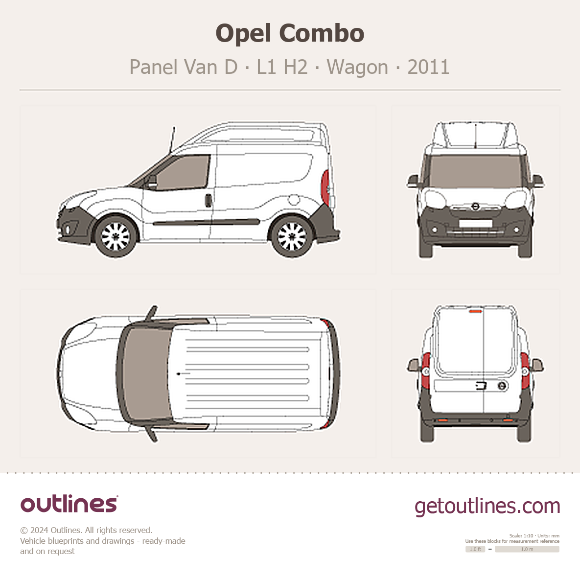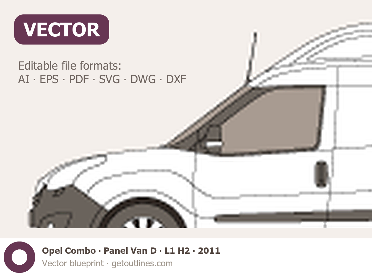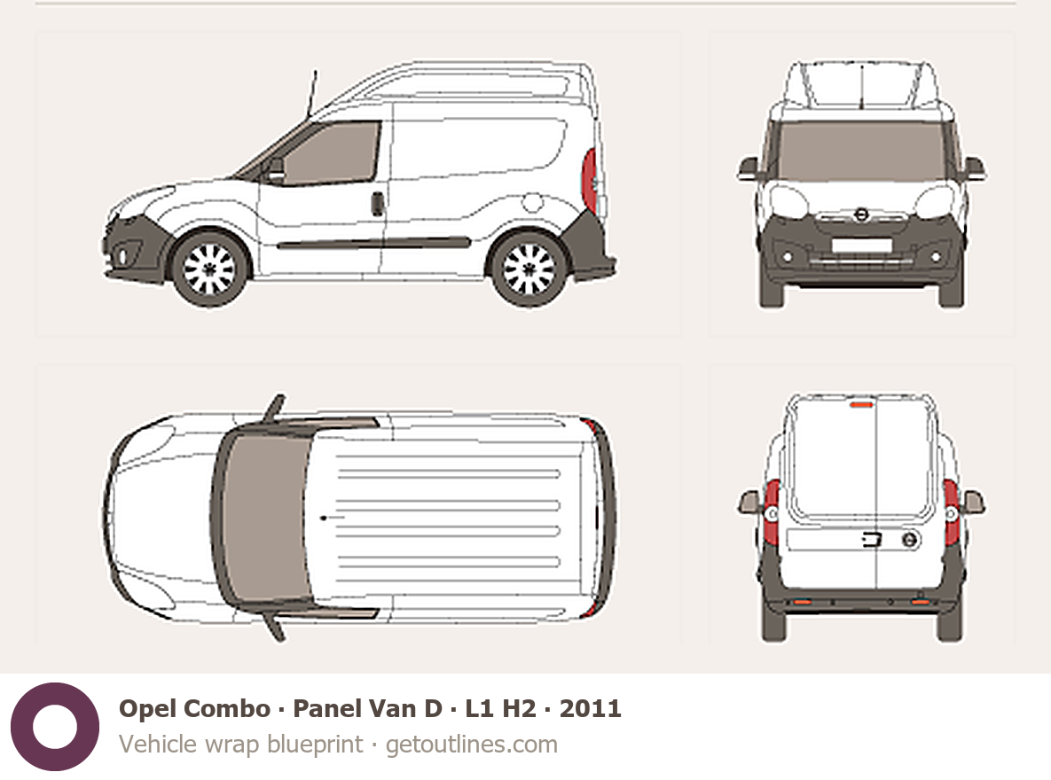 This 2011 Opel Combo Panel Van D L1 H2 Wagon blueprint helps designers, wrap studios, and 3D artists simplify their workflow and save valuable time for creative work instead of routine tasks.