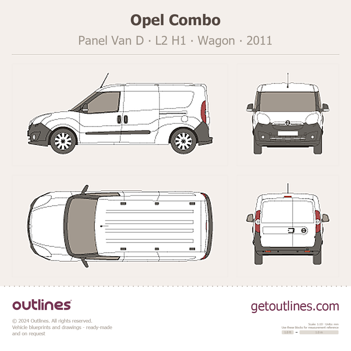 This is a blueprint of the Combo, produced by carmaker Opel in 2011 - Present (2025, 2026). It features a Wagon body design and is classified as a Commercial vehicle.