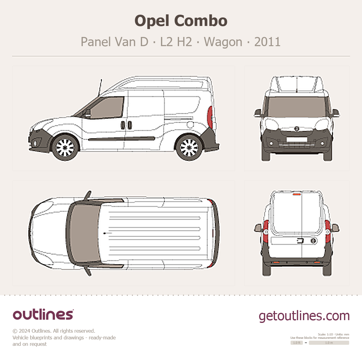 This is a blueprint of the Combo, produced by carmaker Opel in 2011 - Present (2025, 2026). It features a Wagon body design and is classified as a Commercial vehicle.