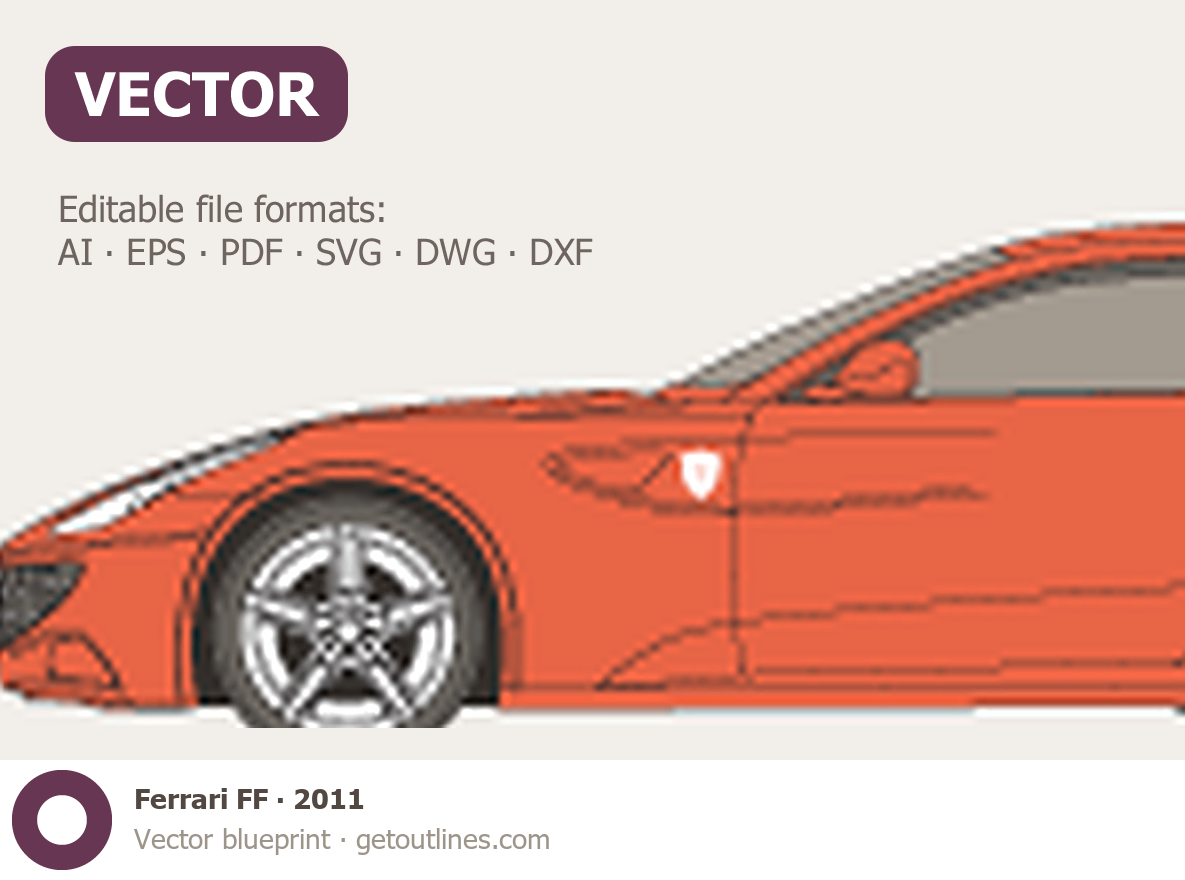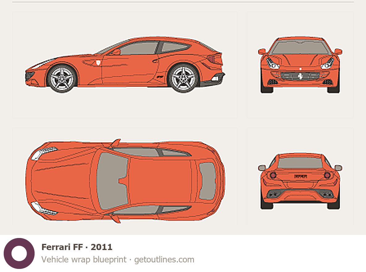 This 2011 Ferrari FF Hatchback blueprint helps designers, wrap studios, and 3D artists simplify their workflow and save valuable time for creative work instead of routine tasks.