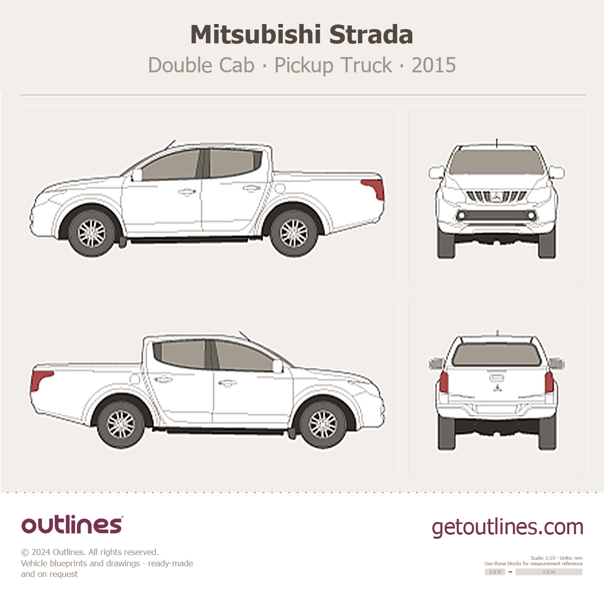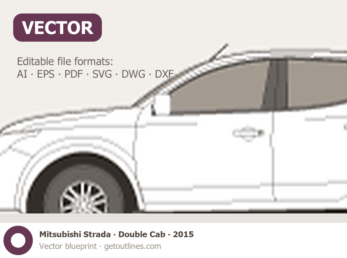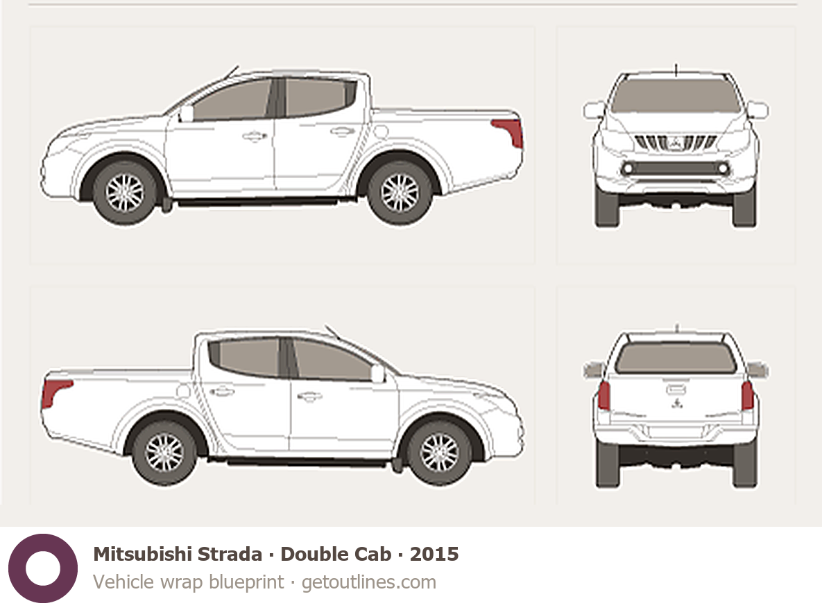 This 2015 Mitsubishi Strada Double Cab Pickup Truck blueprint helps designers, wrap studios, and 3D artists simplify their workflow and save valuable time for creative work instead of routine tasks.