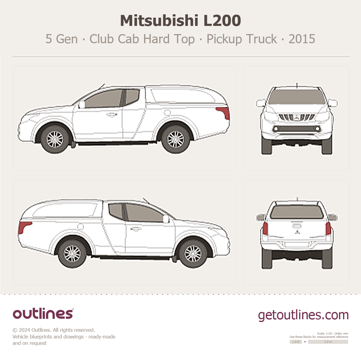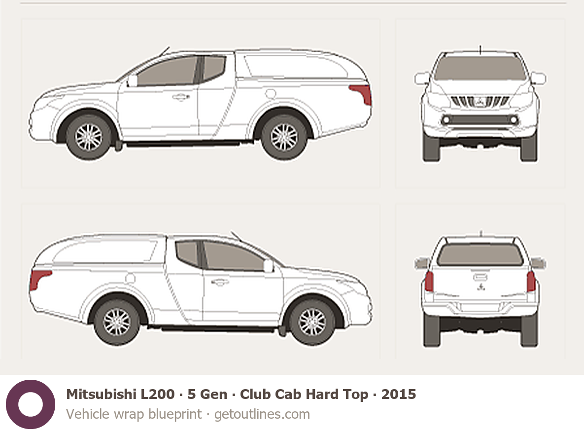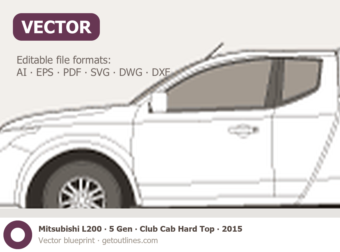 Buy this Mitsubishi L200 5 Gen blueprint and line drawing in high-quality editable vector file formats. Best for 3D and car wrap design.
