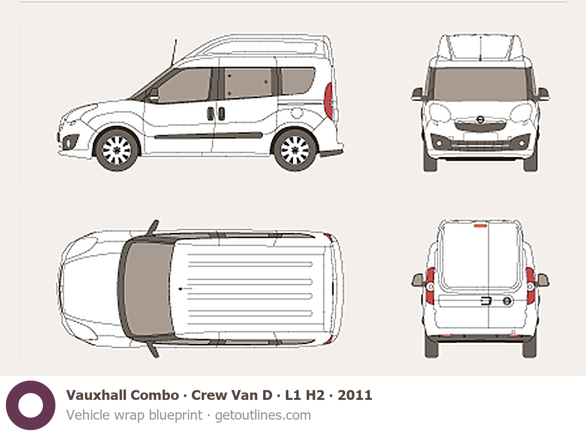 This 2011 Vauxhall Combo Crew Van D L1 H2 Wagon blueprint helps designers, wrap studios, and 3D artists simplify their workflow and save valuable time for creative work instead of routine tasks.