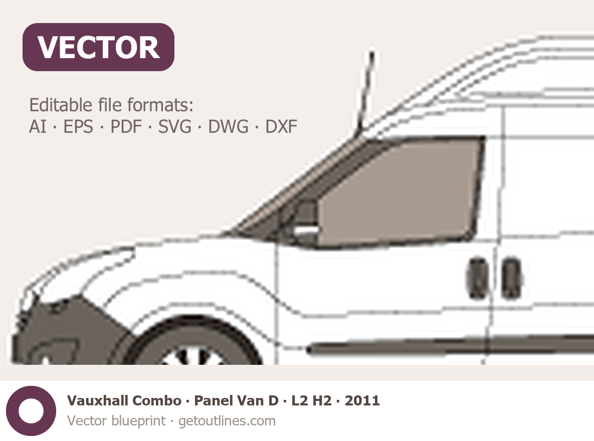 Buy this Vauxhall Combo Panel Van D blueprint and line drawing in high-quality editable vector file formats. Best for 3D and car wrap design.