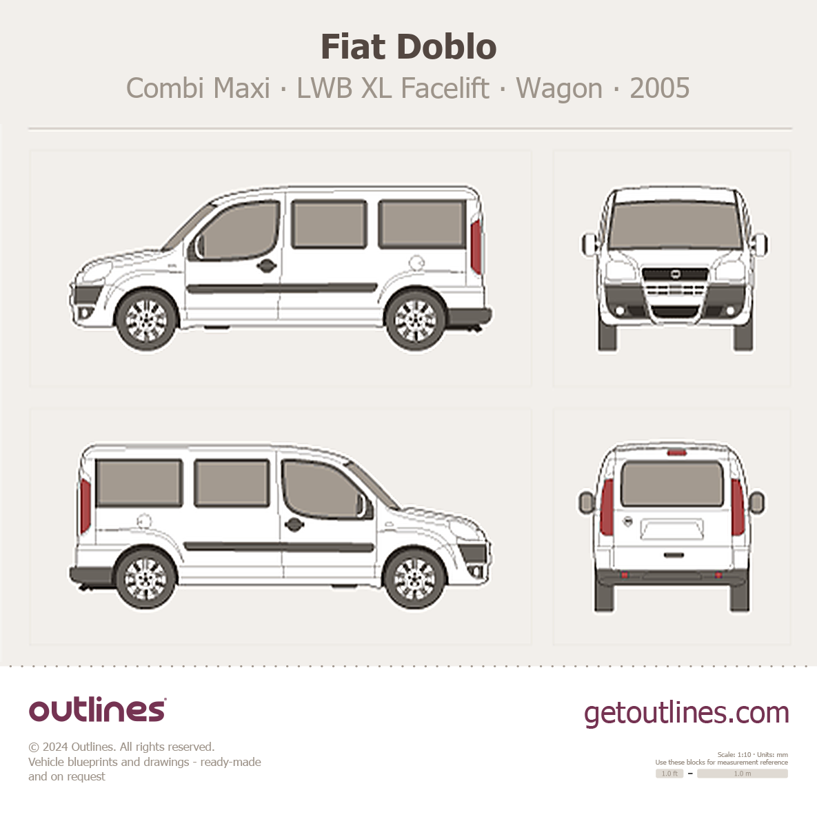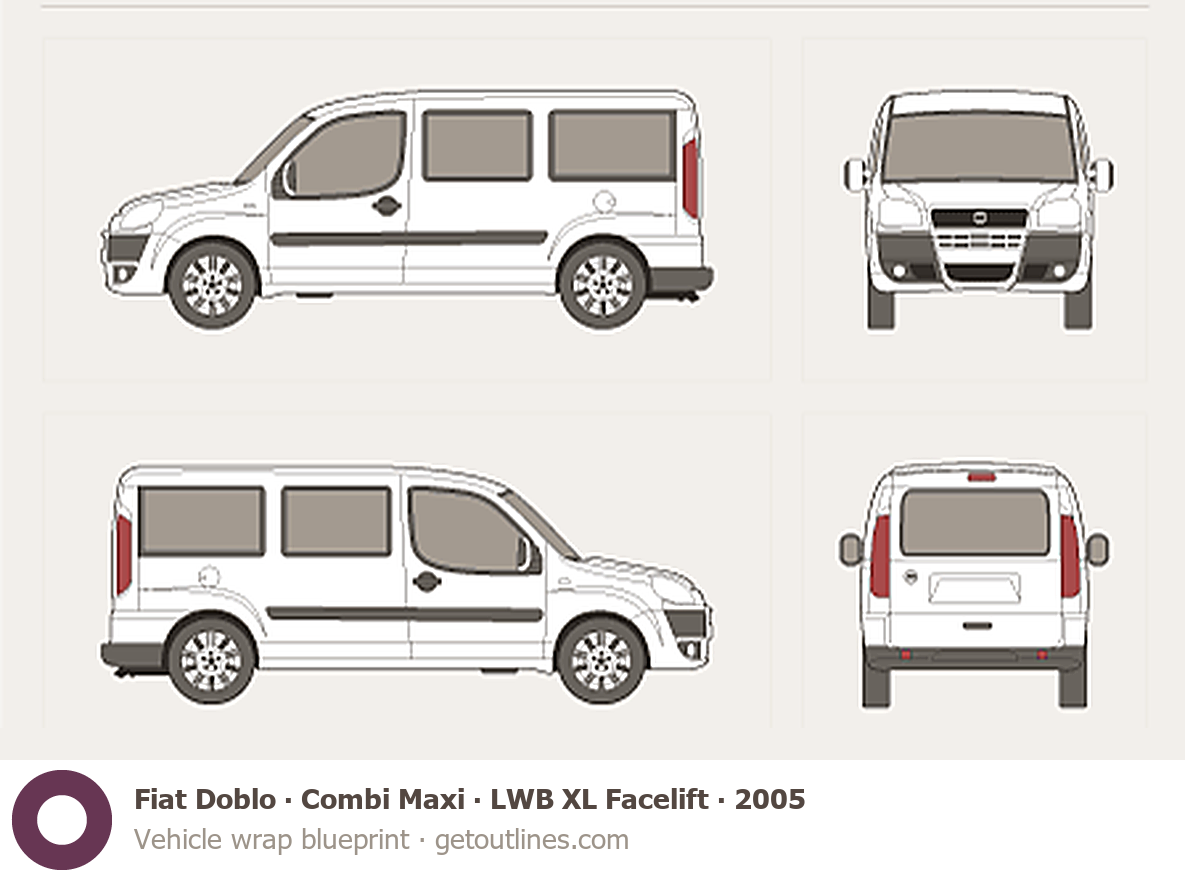 This 2005 Fiat Doblo Combi Maxi LWB XL Facelift Wagon blueprint helps designers, wrap studios, and 3D artists simplify their workflow and save valuable time for creative work instead of routine tasks.