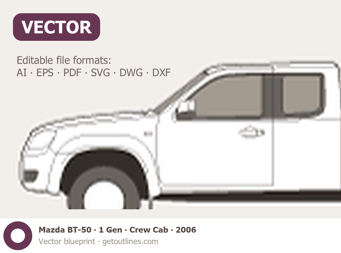 Buy this Mazda BT-50 1 Gen blueprint and line drawing in high-quality editable vector file formats. Best for 3D and car wrap design.