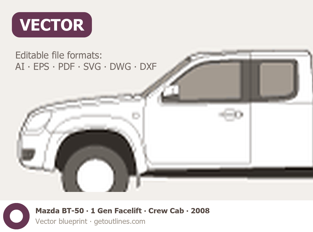 Buy this Mazda BT-50 1 Gen Facelift blueprint and line drawing in high-quality editable vector file formats. Best for 3D and car wrap design.