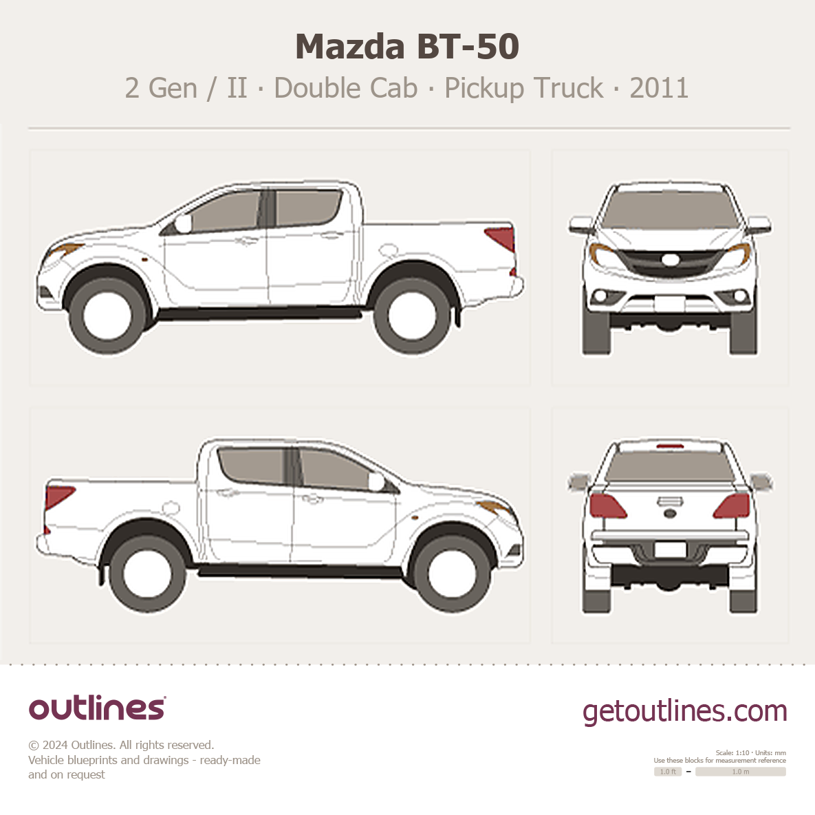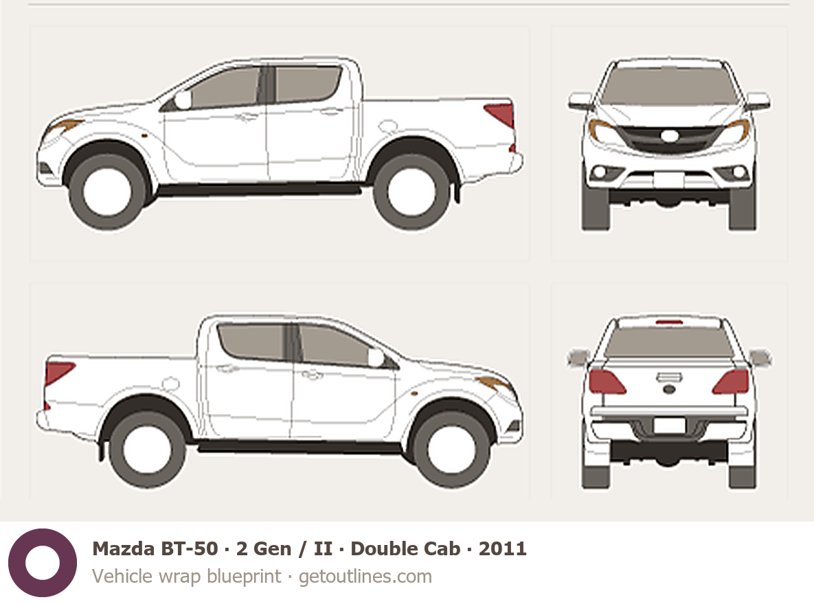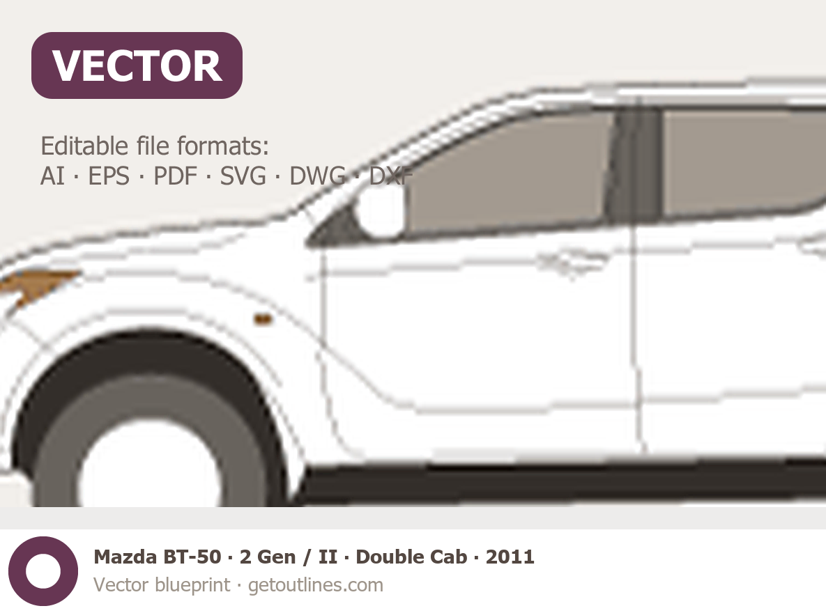 Buy this Mazda BT-50 2 Gen / II blueprint and line drawing in high-quality editable vector file formats. Best for 3D and car wrap design.
