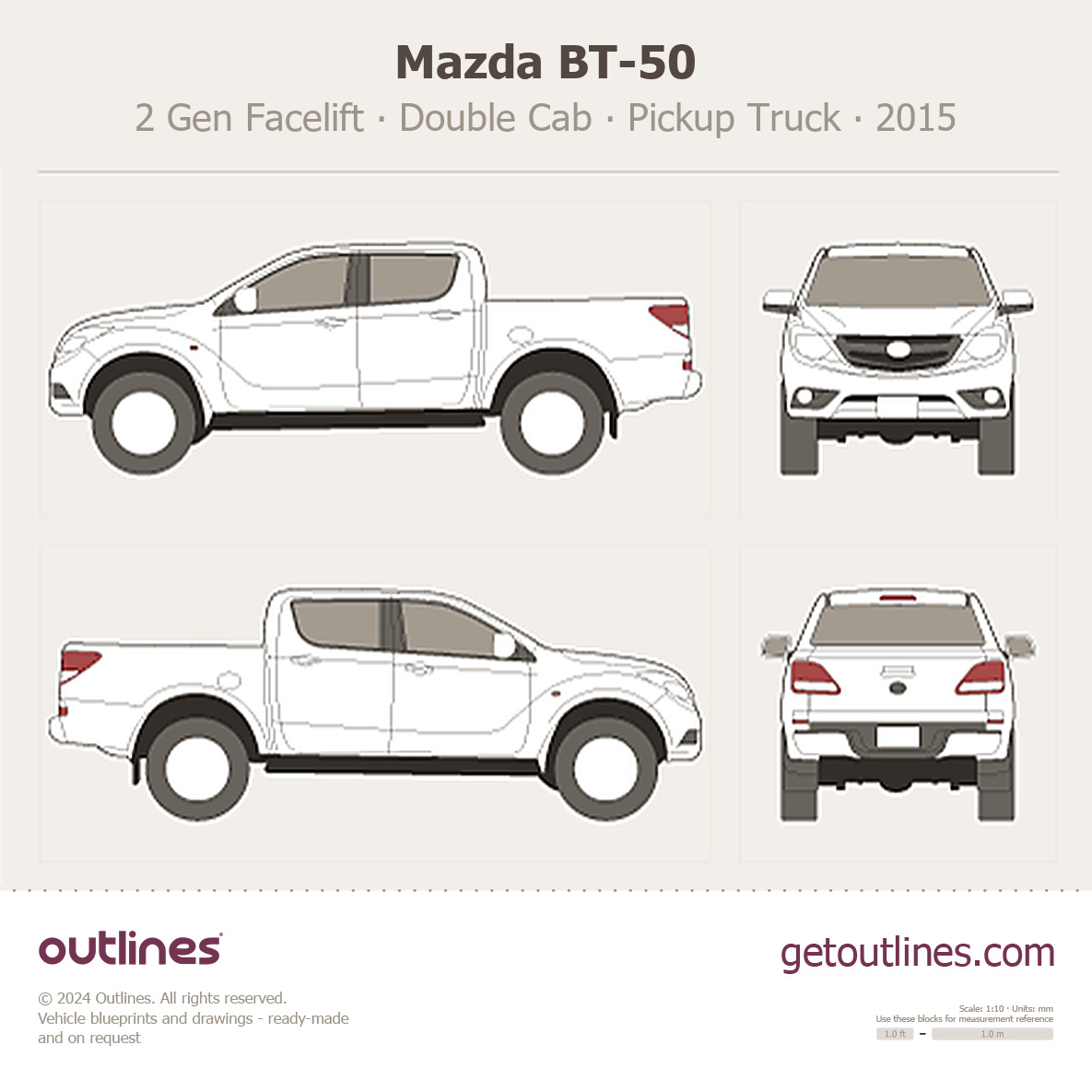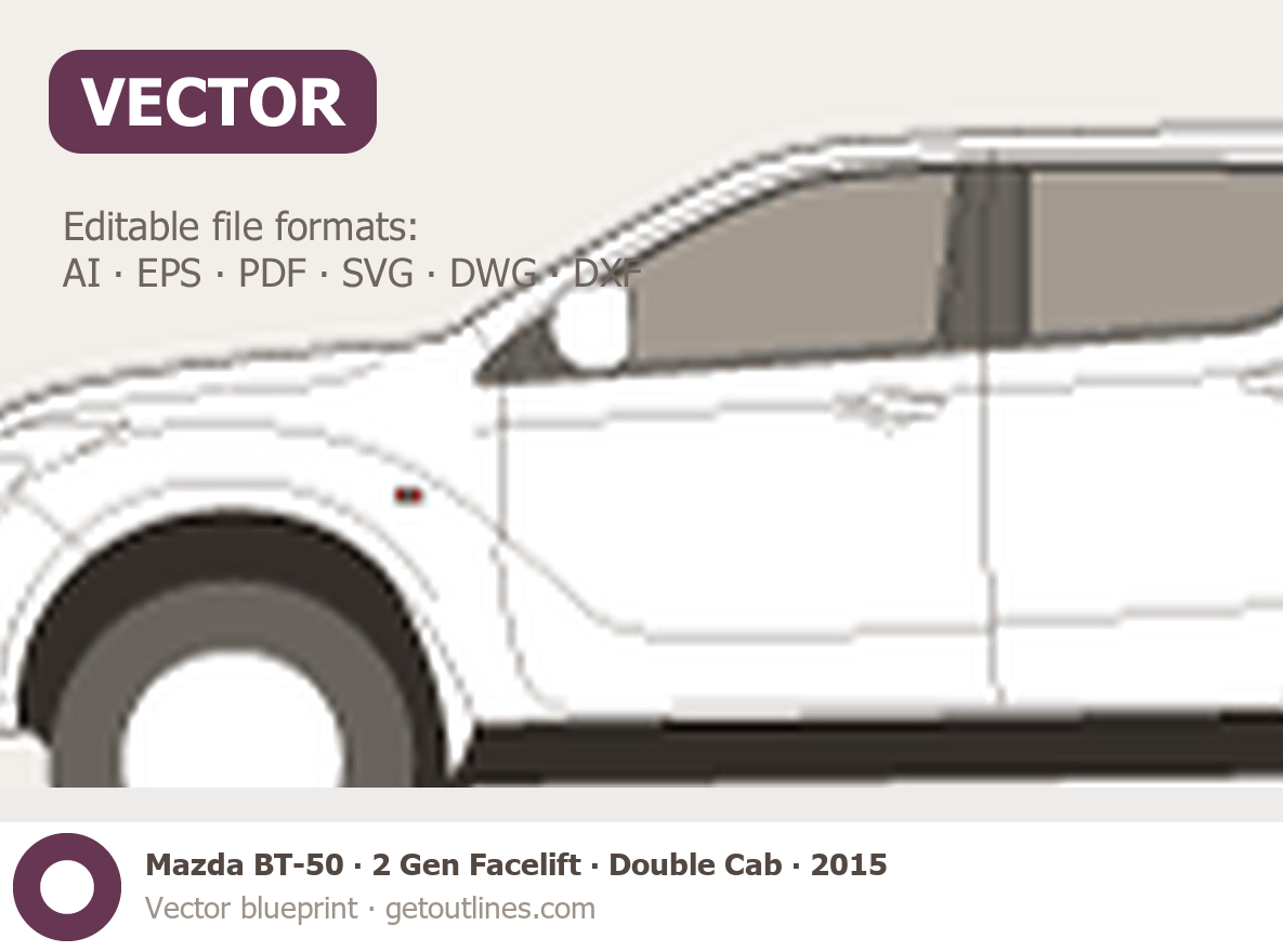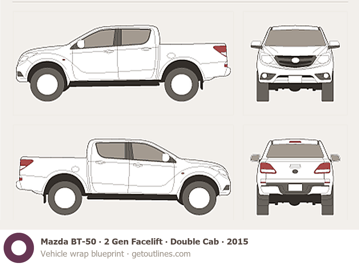 This 2015 Mazda BT-50 2 Gen Facelift Double Cab Pickup Truck blueprint helps designers, wrap studios, and 3D artists simplify their workflow and save valuable time for creative work instead of routine tasks.