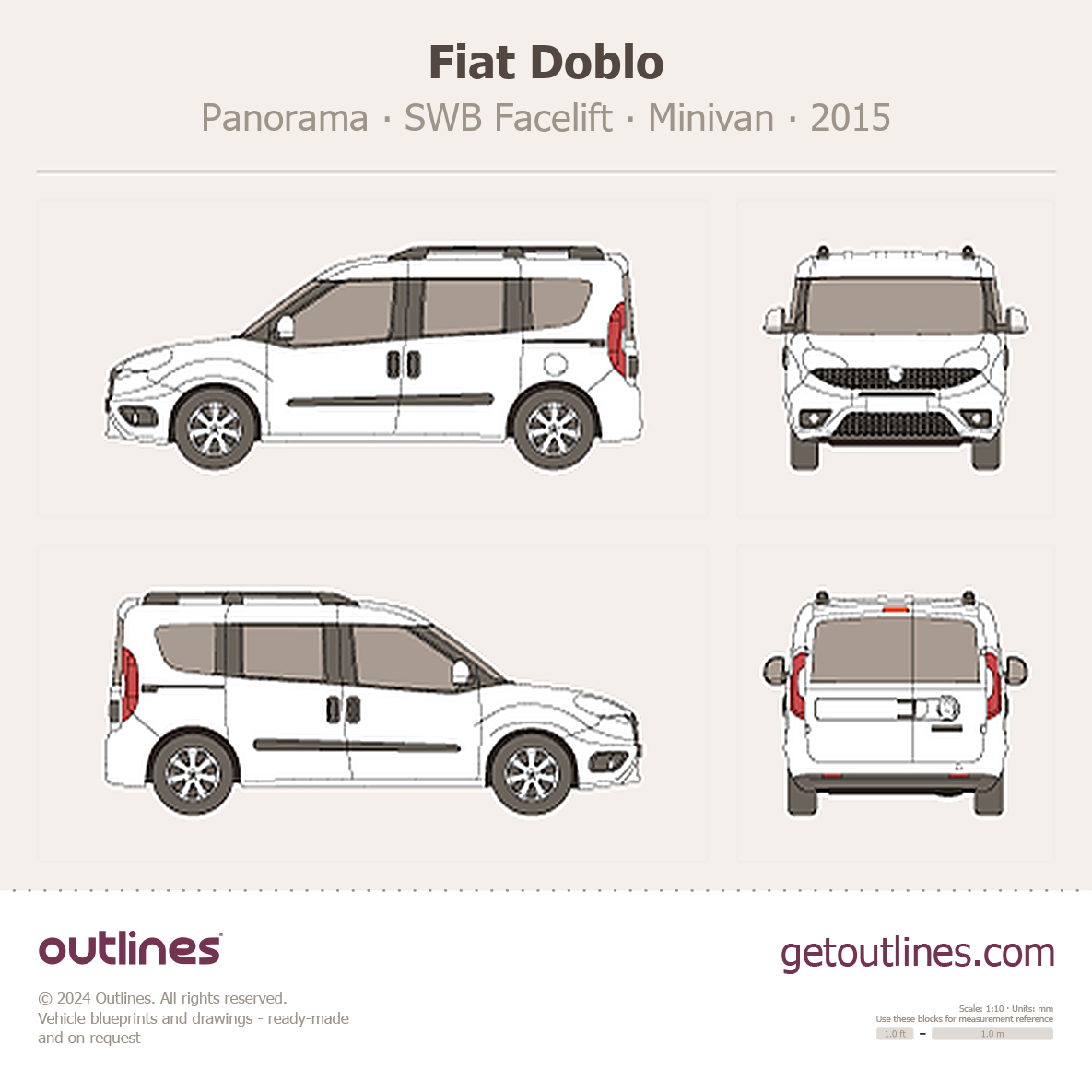This is a blueprint of the Doblo, produced by carmaker Fiat in 2015 - Present (2025, 2026). It features a Minivan body design and is classified as a Family vehicle.