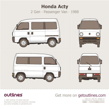 This is a blueprint of the Acty, produced by carmaker Honda in 1988 - 1993. It features a Van body design and is classified as a Commercial vehicle.