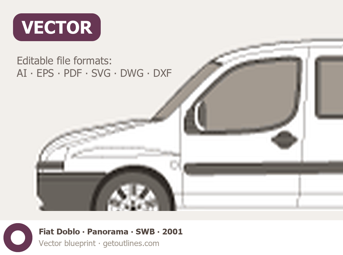 Buy this Fiat Doblo Panorama blueprint and line drawing in high-quality editable vector file formats. Best for 3D and car wrap design.