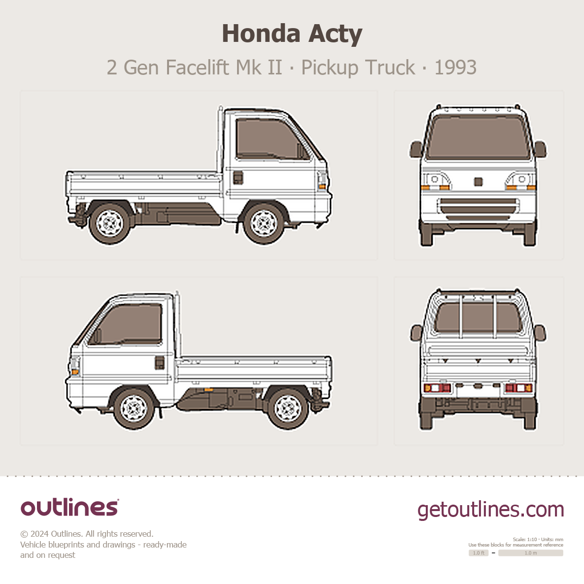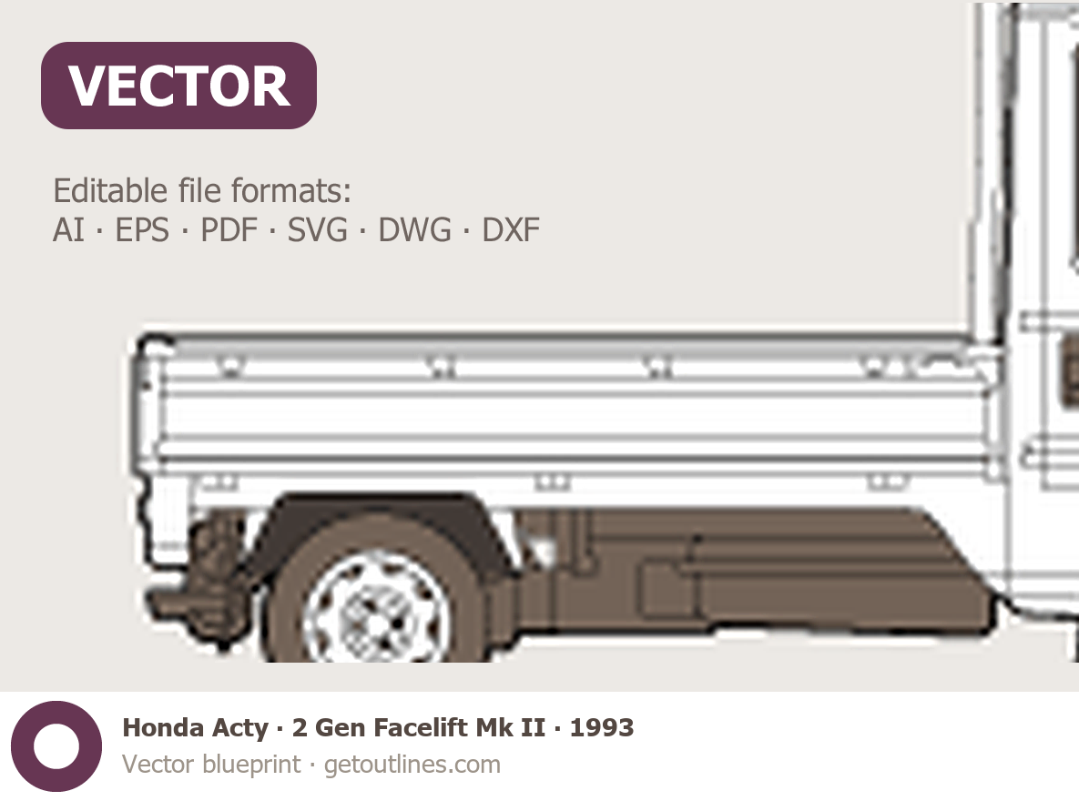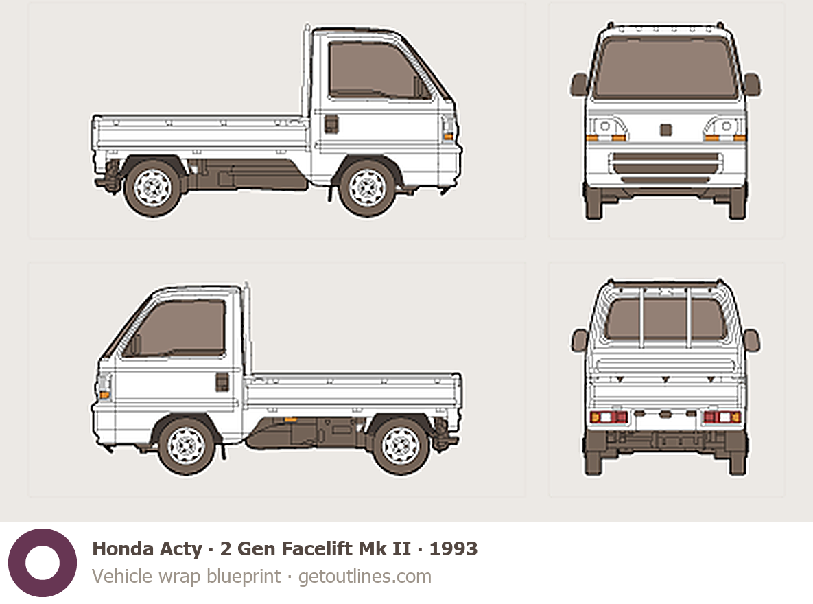 This 1993 Honda Acty 2 Gen Facelift Mk II Pickup Truck blueprint helps designers, wrap studios, and 3D artists simplify their workflow and save valuable time for creative work instead of routine tasks.