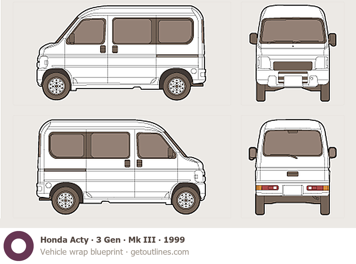 This 1999 Honda Acty 3 Gen ∙ Mk III Van blueprint helps designers, wrap studios, and 3D artists simplify their workflow and save valuable time for creative work instead of routine tasks.