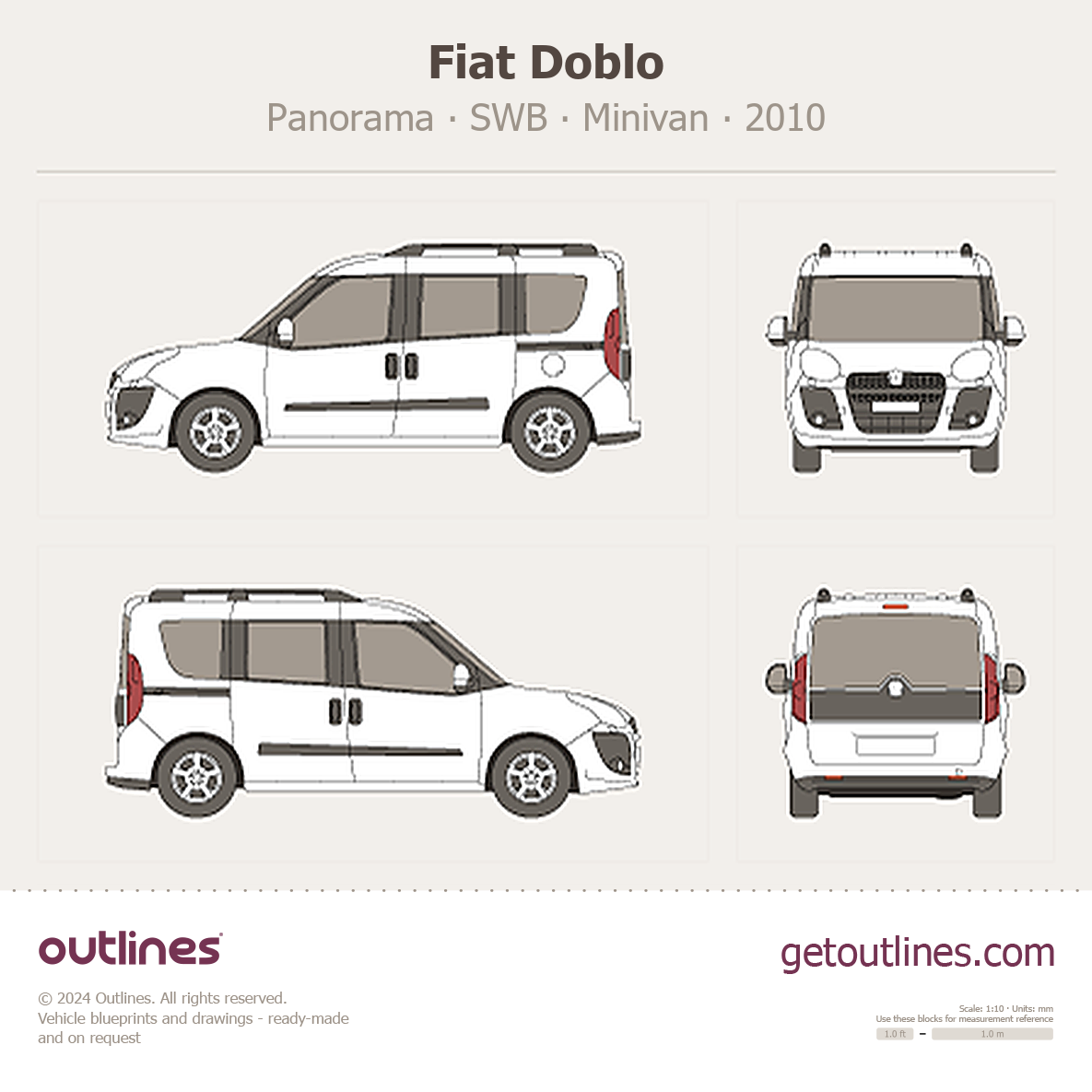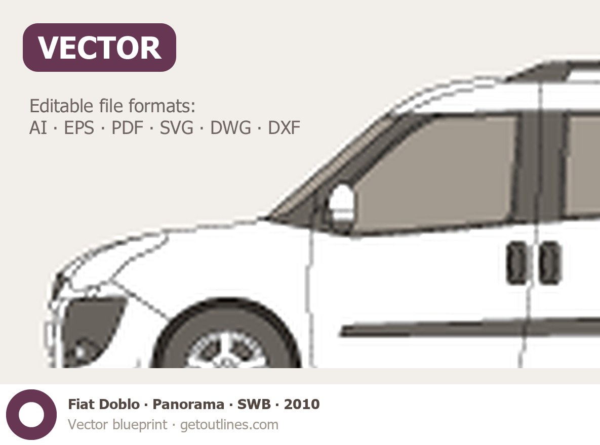 This 2010 Fiat Doblo Panorama SWB Minivan blueprint helps designers, wrap studios, and 3D artists simplify their workflow and save valuable time for creative work instead of routine tasks.