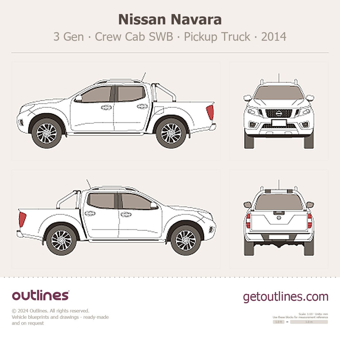 This 2014 Nissan Navara 3 Gen Crew Cab SWB Pickup Truck blueprint helps designers, wrap studios, and 3D artists simplify their workflow and save valuable time for creative work instead of routine tasks.