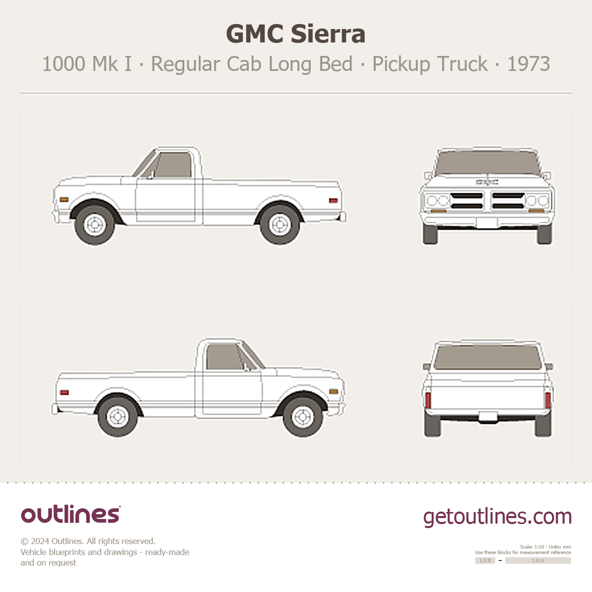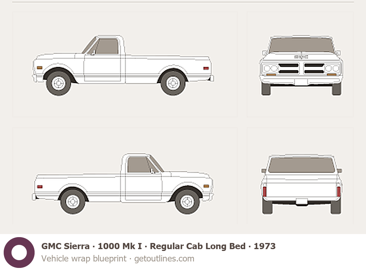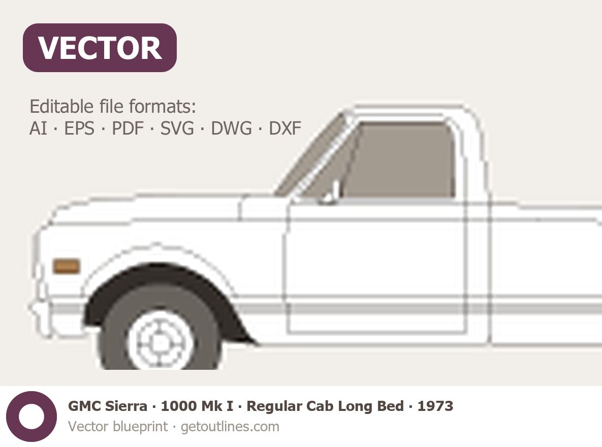 Buy this GMC Sierra 1000 Mk I blueprint and line drawing in high-quality editable vector file formats. Best for 3D and car wrap design.