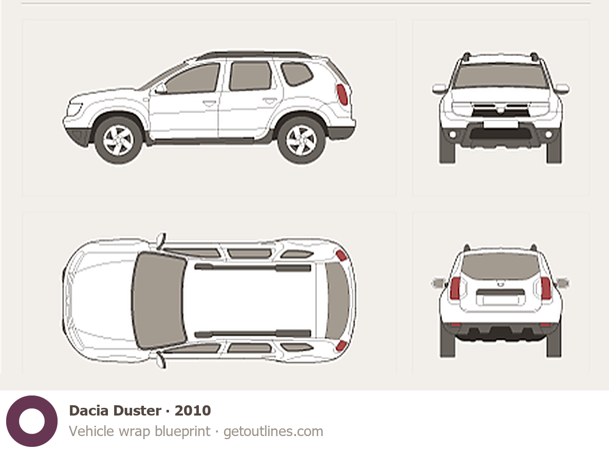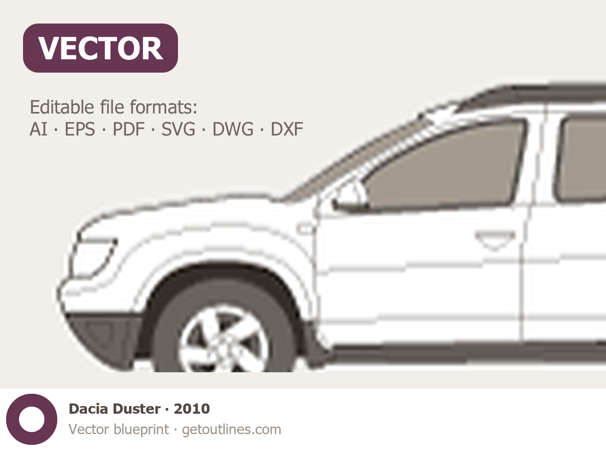 Buy this Dacia Duster blueprint and line drawing in high-quality editable vector file formats. Best for 3D and car wrap design.