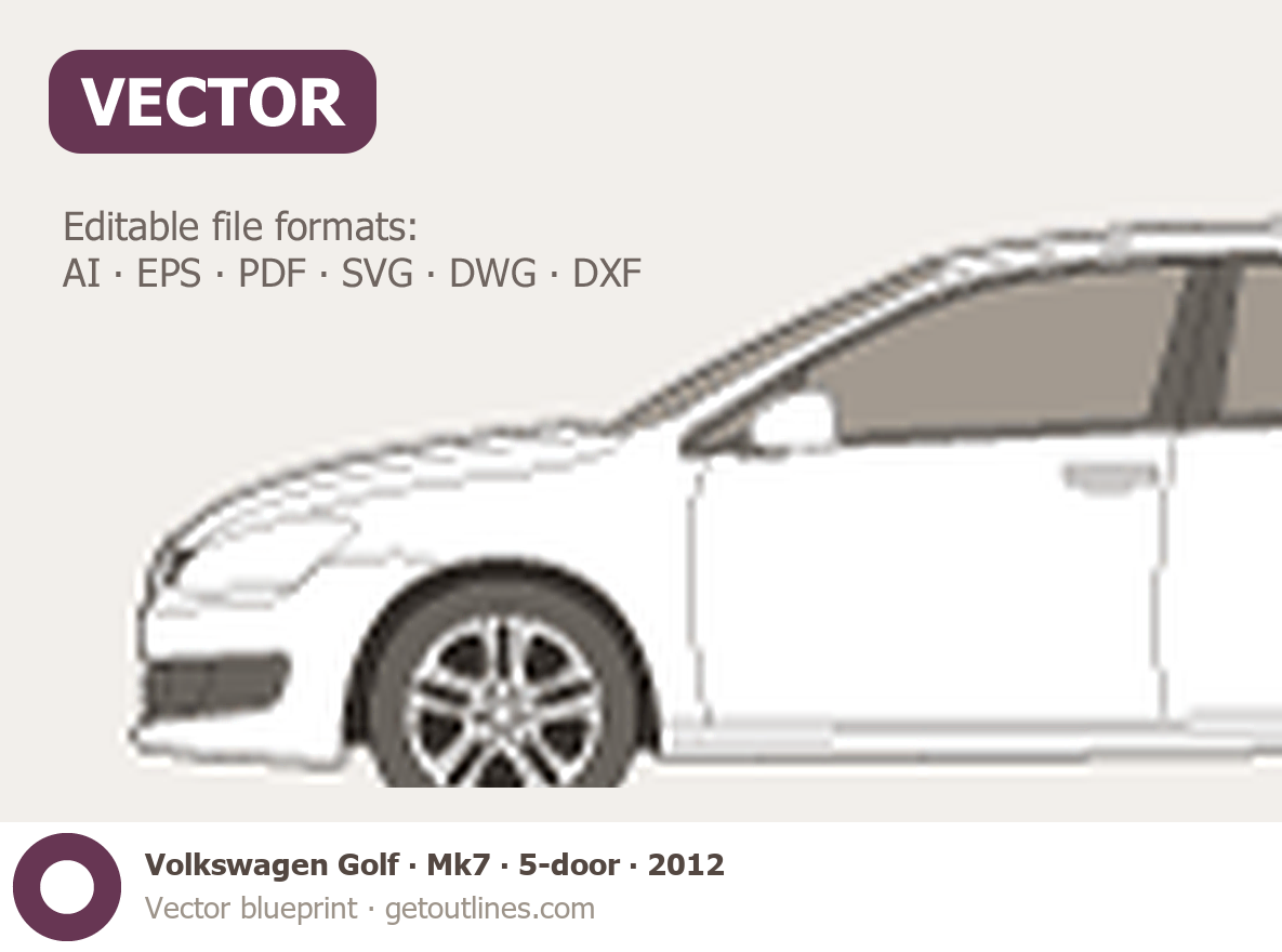 This 2012 Volkswagen Golf Mk7 5-door Hatchback blueprint helps designers, wrap studios, and 3D artists simplify their workflow and save valuable time for creative work instead of routine tasks.